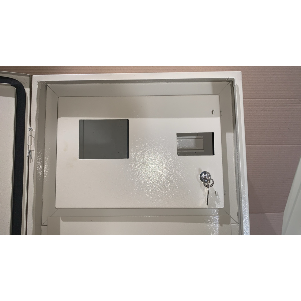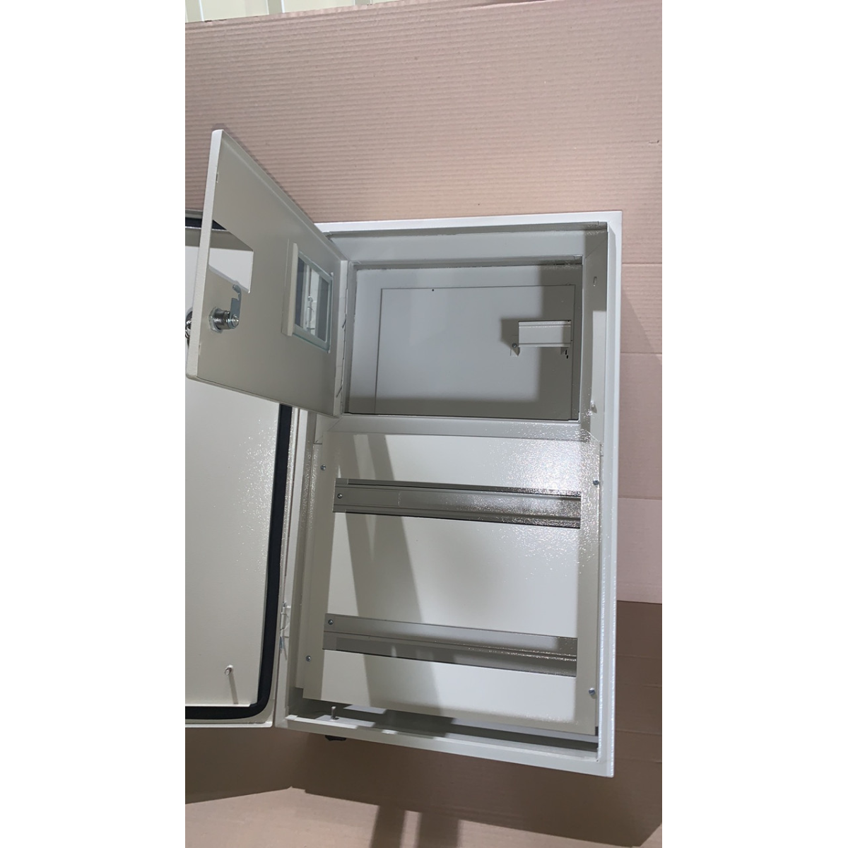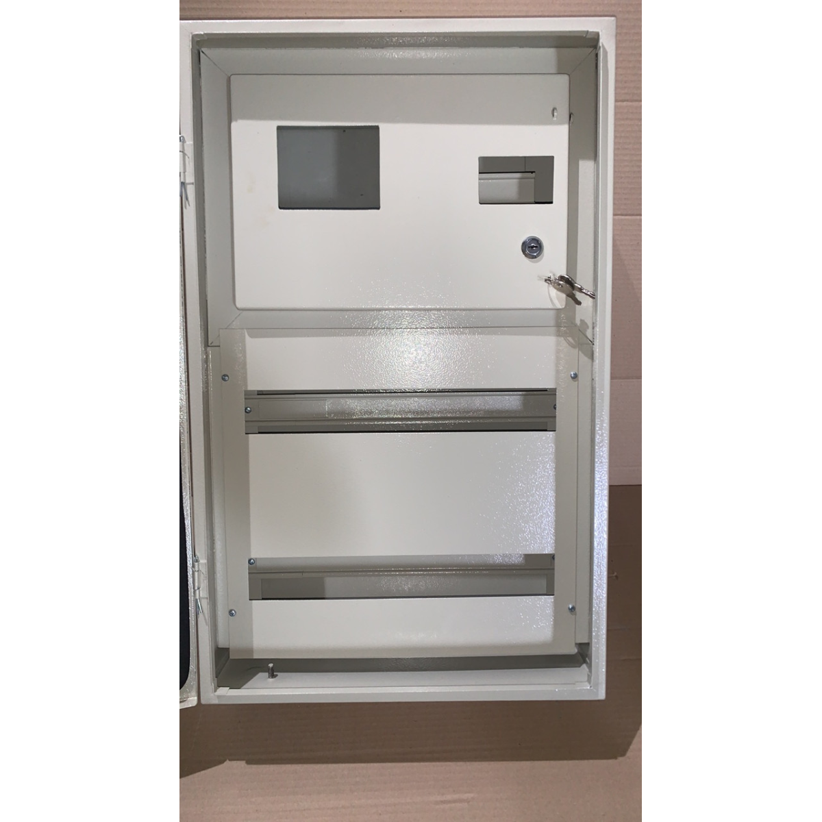ЩІТ УЧНО-РАСПРЕДІЛЬНИЙ IP54 ЩУРнг-3/36 (ЩРНг-3-36-4) Щит ЩУРнг-3/36+4 (ЩРНг-3-36-4) - накладний герметичний IP54 металевий щит для монтажу трифазного лічильника і модульних пристроїв до 40 модулів. ЩУРнг-3/36+4 (ЩРНг-3-36-4) використовується для обліку та розподілу електроенергії. Застосовується для складання обліково-розподільних щитів із використанням модульних пристроїв. У щиті передбачено місце під трифазний лічильник і місце для модульної апаратури до 40 модулів: два ряди по 18 автоматів і місце під ввідний автомат 3.4 полюсний. Розташування модулів: 2*18мод + 1*4мод Комплектація Замок із 2 ключами DIN рейка