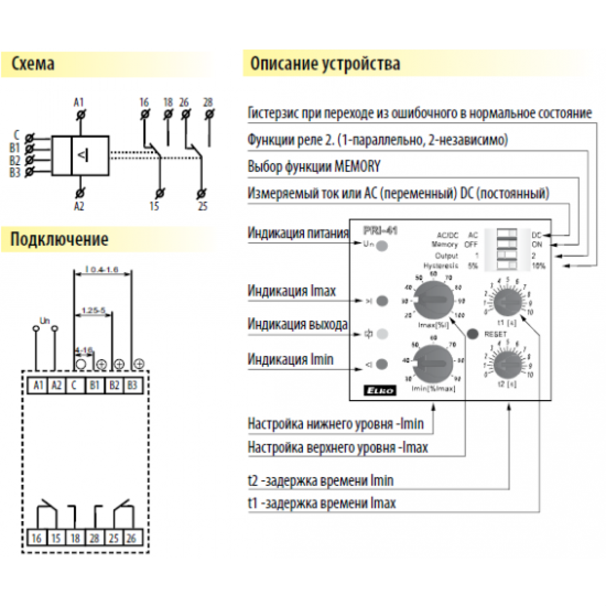 Тип устройства Реле контролю струму
