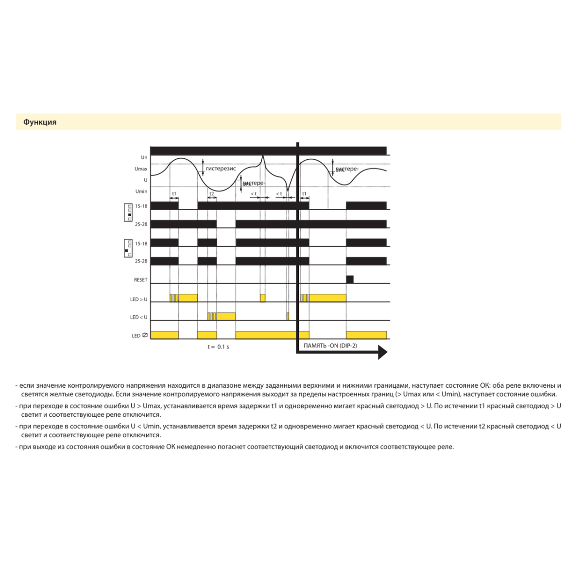 Диапазон регулировки срабатывания по Umах: 20-100% від Un