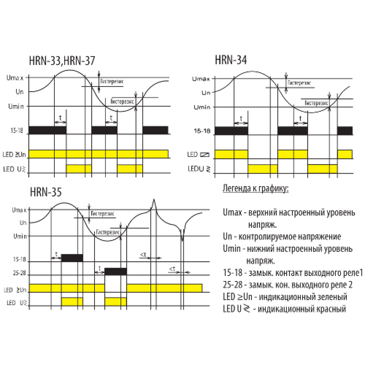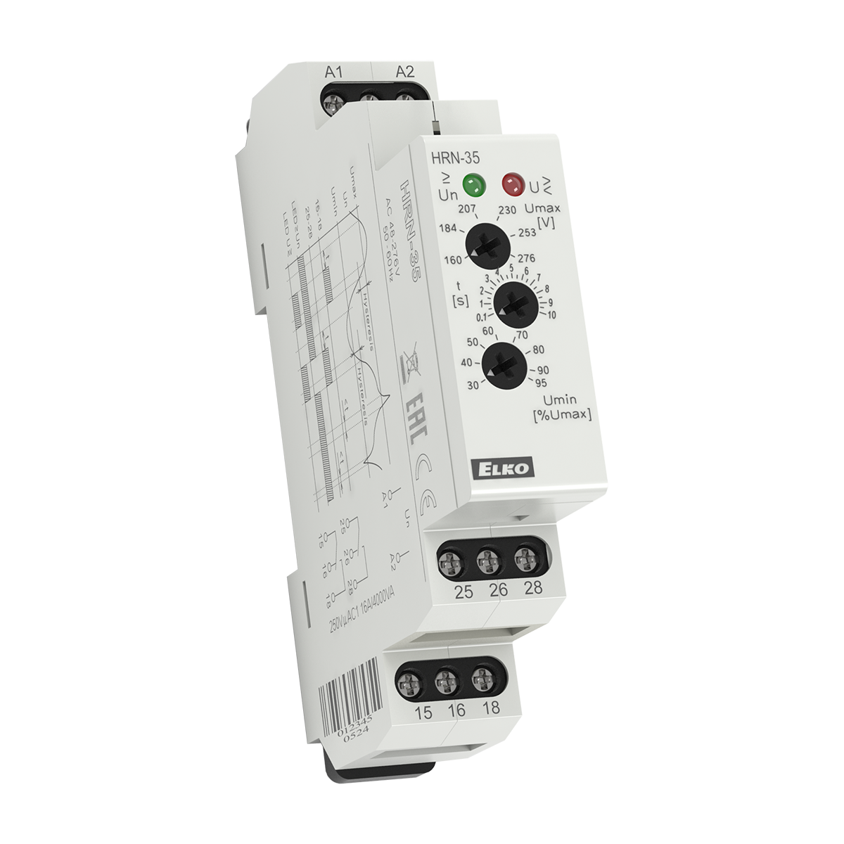 Реле HRN-35 контролює однофазну напругу і оберігає обладнання від зниженої або підвищеної напруги в мережі. Має незалежні вивідні реле для контролю за верхнім і нижнім рівнями. За рахунок цього ви зможете визначити, яка межа керованого напруги була порушена.