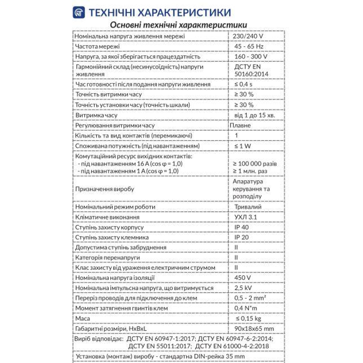 Тип монтажа На DIN рейку