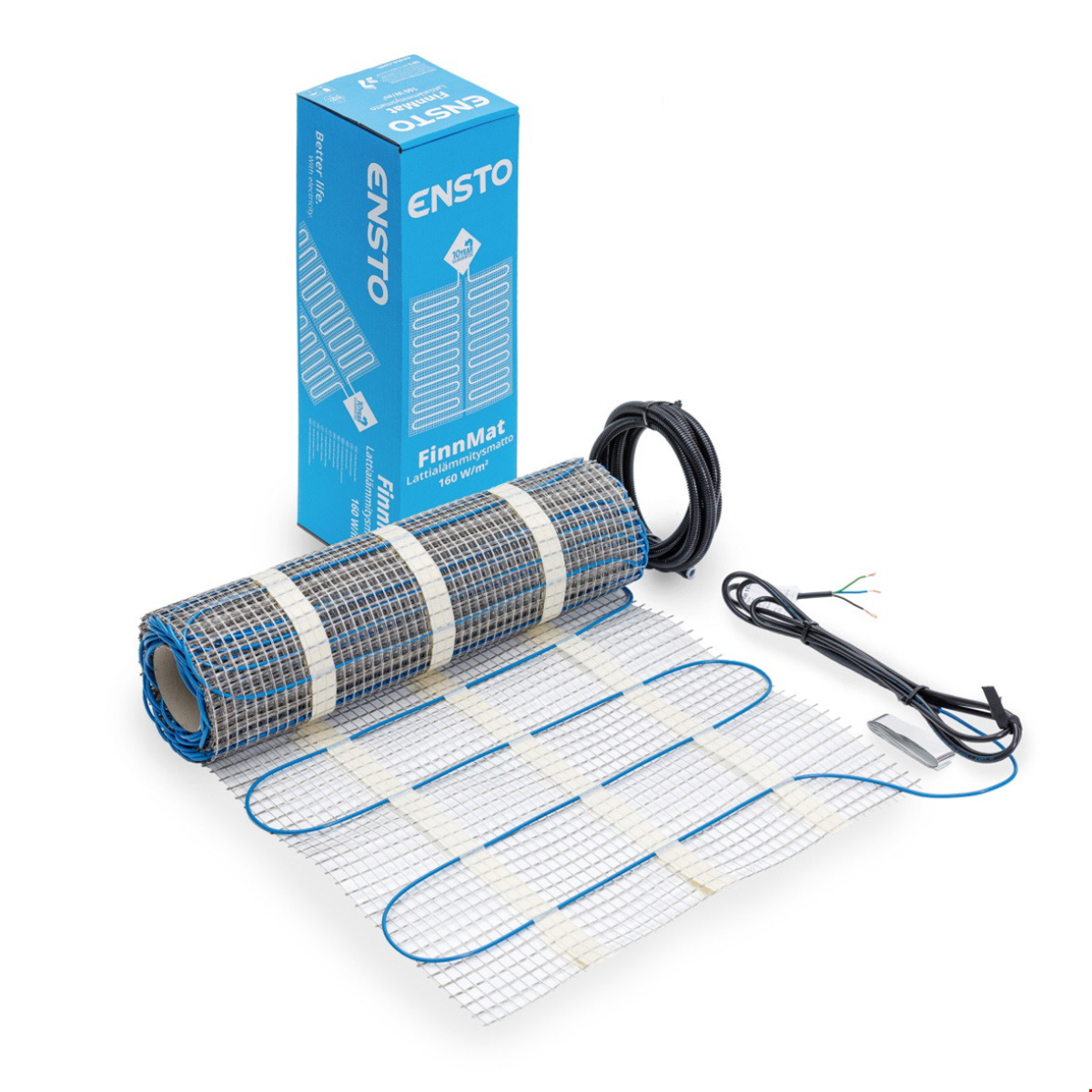 Нагрівальний мат частково для акумулюючого або прямого опалення підлоги. Потужність: 240 W. Довжина кабелю: 2,5 м. Площа: 1.5 м2. Тонкий мат FinnMat 160Вт/м2 - універсальне рішення для комфортного обігріву сухих і вологих досить теплоізольованих приміщень з бетонними, кам“яними або кахельними статями. FinnMat 160 Вт/м2 може використовуватися в приміщеннях з іншими видами підлогових покриттів (ламінат, паркет) за умови укладання вирівнюючу стяжку. Упаковка включає нагрівальний мат, алюмінієву клейку стрічку, гофровану трубку для установки датчика температури підлоги. Мінімальна температура монтажу + 5 °C. Ширина мата FinnMat 48 см Довжина живильного кабелю – 2,5 м.