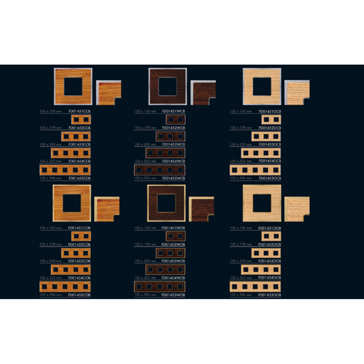 Рамки ексклюзивного дизайну, виготовлені з цієї латуні зі вставками з натурального дерева, серія з обмеженим випуском. Вид порід дерева використовуються для вставок: дуб, вишня і венге. Ідеально підходить для унікальних проекто