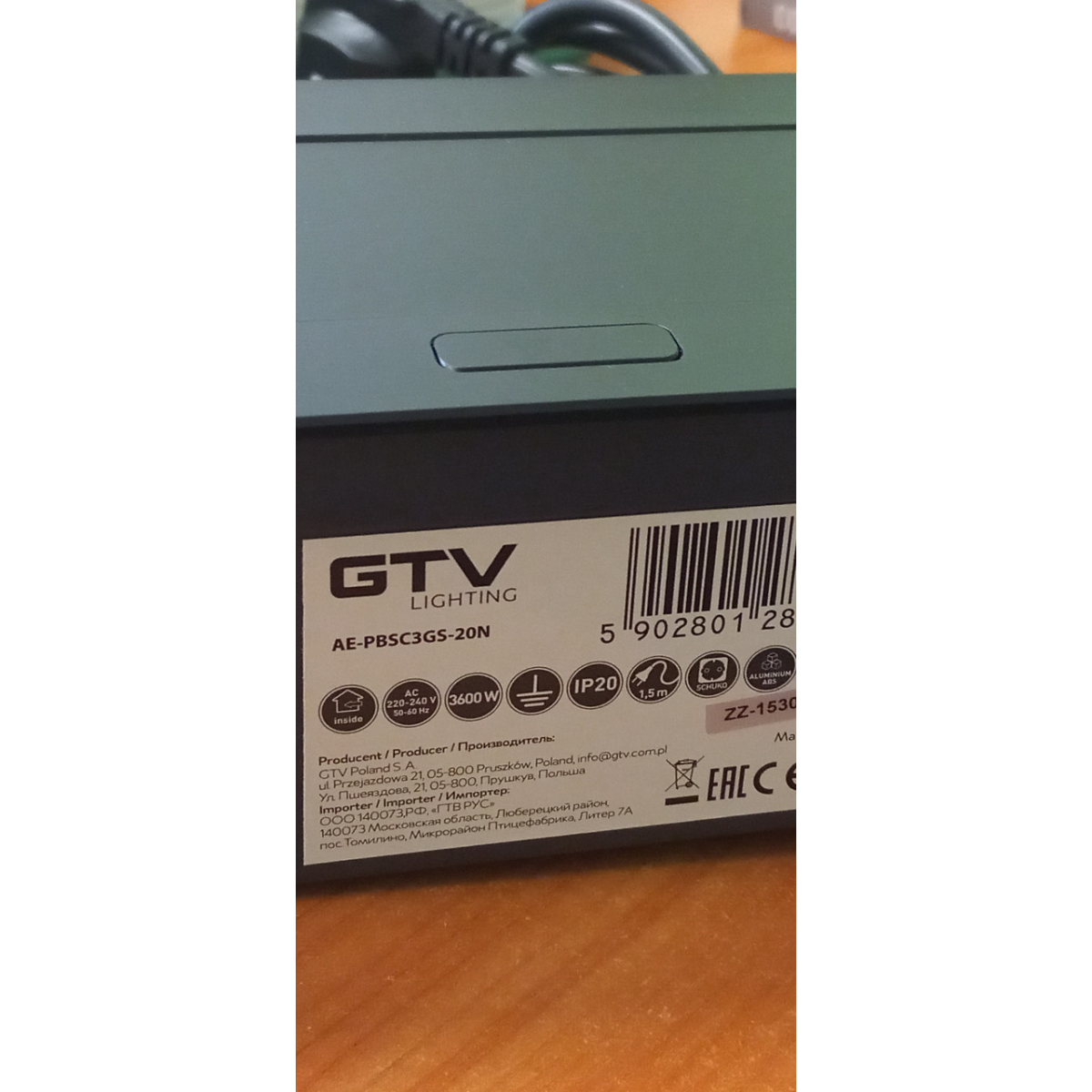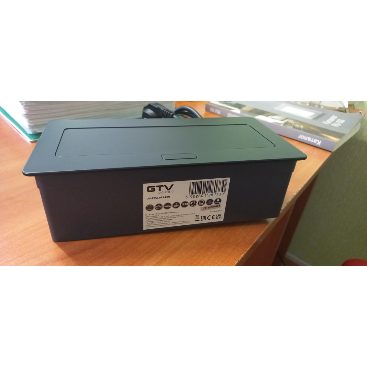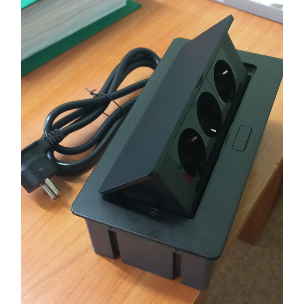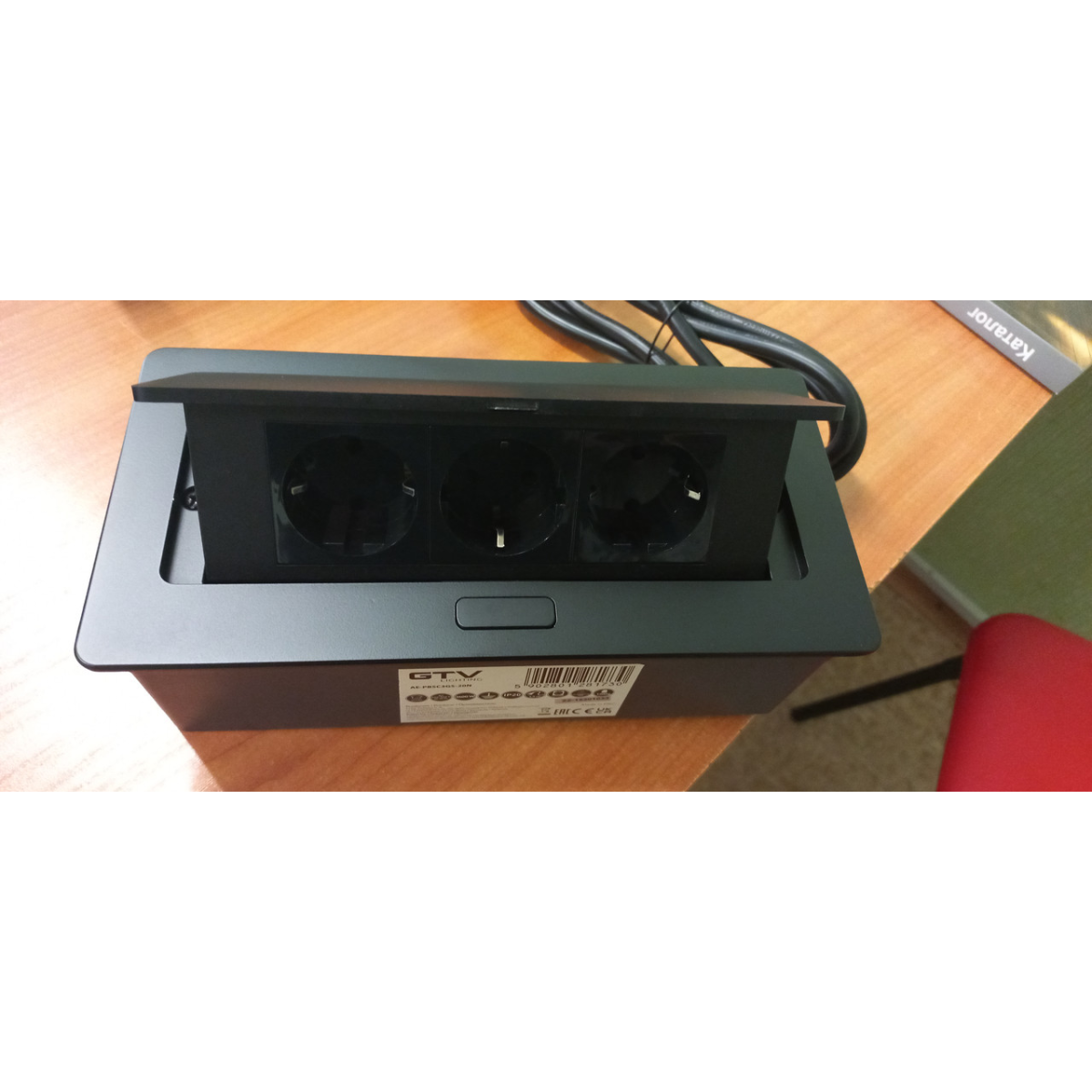 Розетка меблева (подовжувач) вбудована GTV SOFT 3xгн. schuko, дріт 1,5 м із мережевою вилкою, чорна