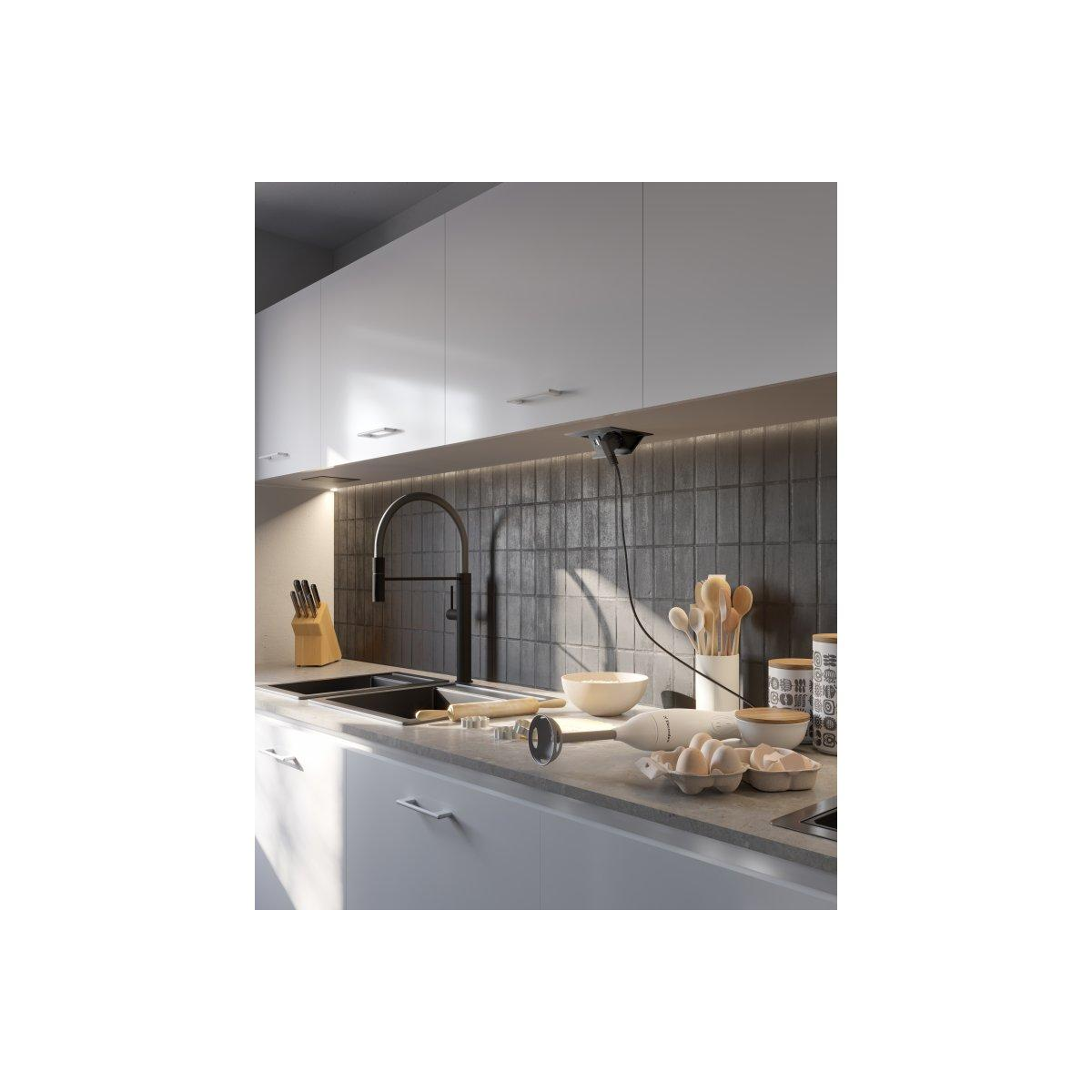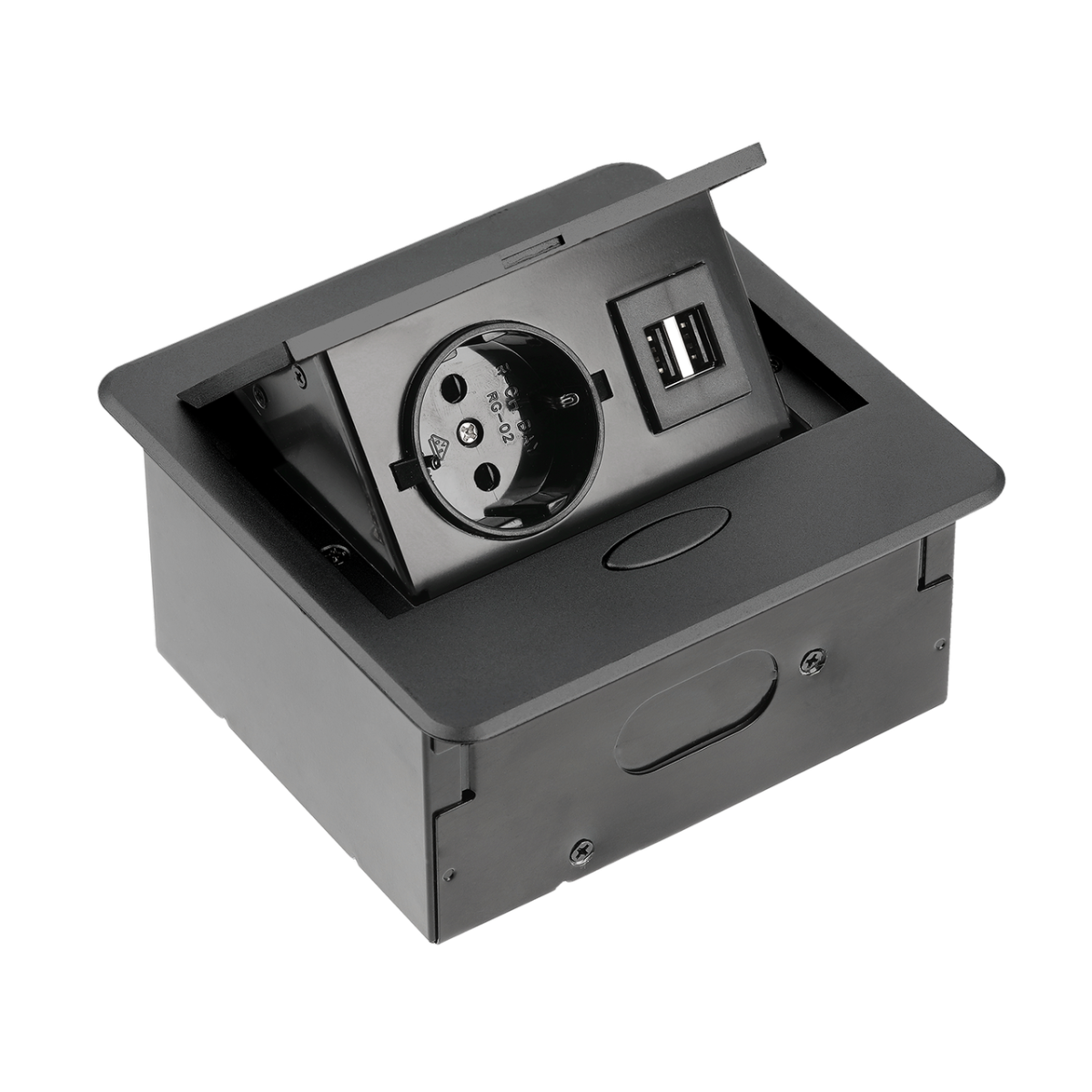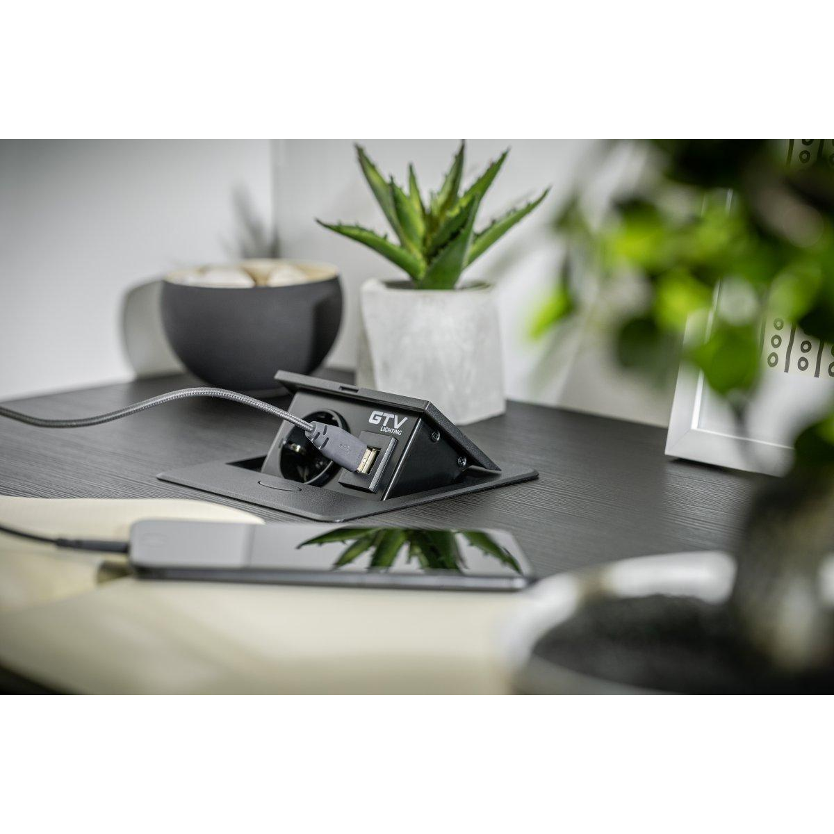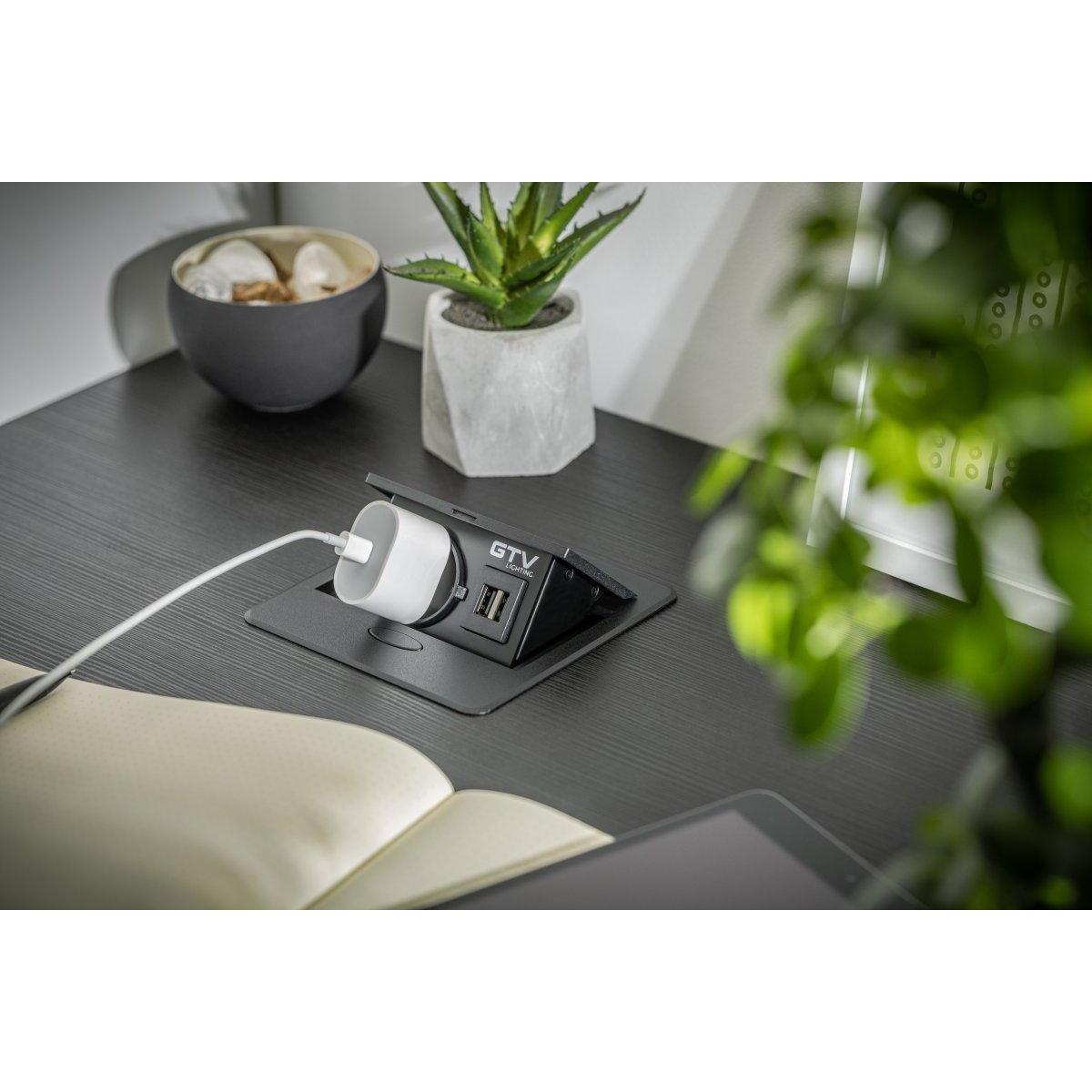 Настільний подовжувач для розеток і USB GTV, вбудований AVARO. Монтується в стіл або іншу поверхню, в не робочому положенні кришка блоку знаходиться на одному рівні зі стільницею. При необхідності блок легко відкривається натисканням на кнопку, і всі розетки доступні для використання. Ідеальне рішення для комфортного і зручного робочого місця, кабінетів, кухонь і т.п.Кількість електричних розеток: 1 Кількість роз“ємів USB: 2 (5V / 2A) Тип гнізда: Schuko Ступінь захисту: IP 20 Максимальне навантаження, W 3500 Номінальна напруга, V: 220-240 V 50-60Hz Довжина кабелю: 1.5 м (в комплекті)