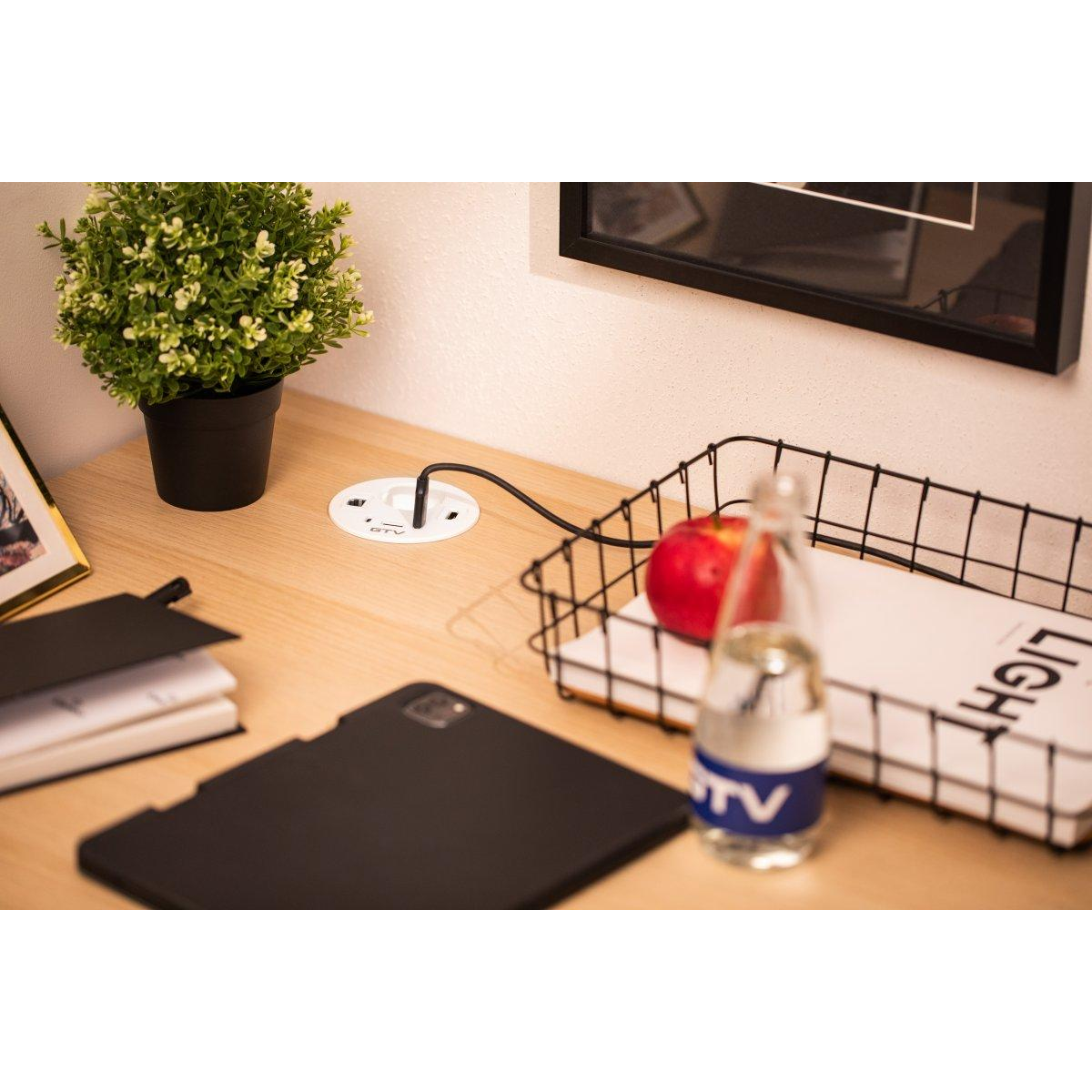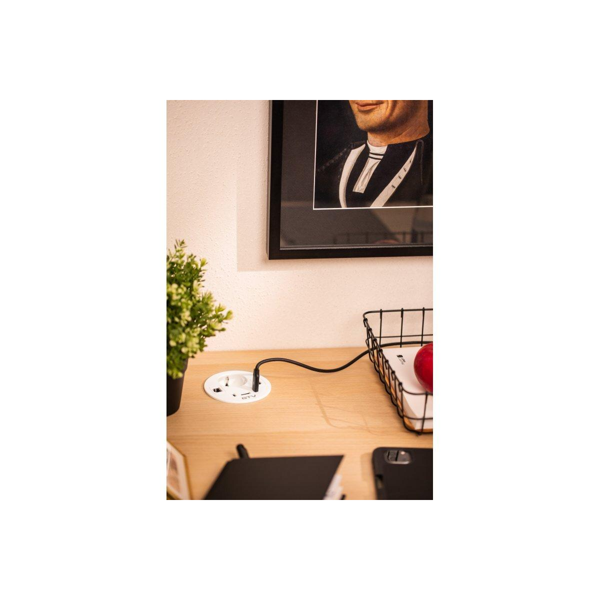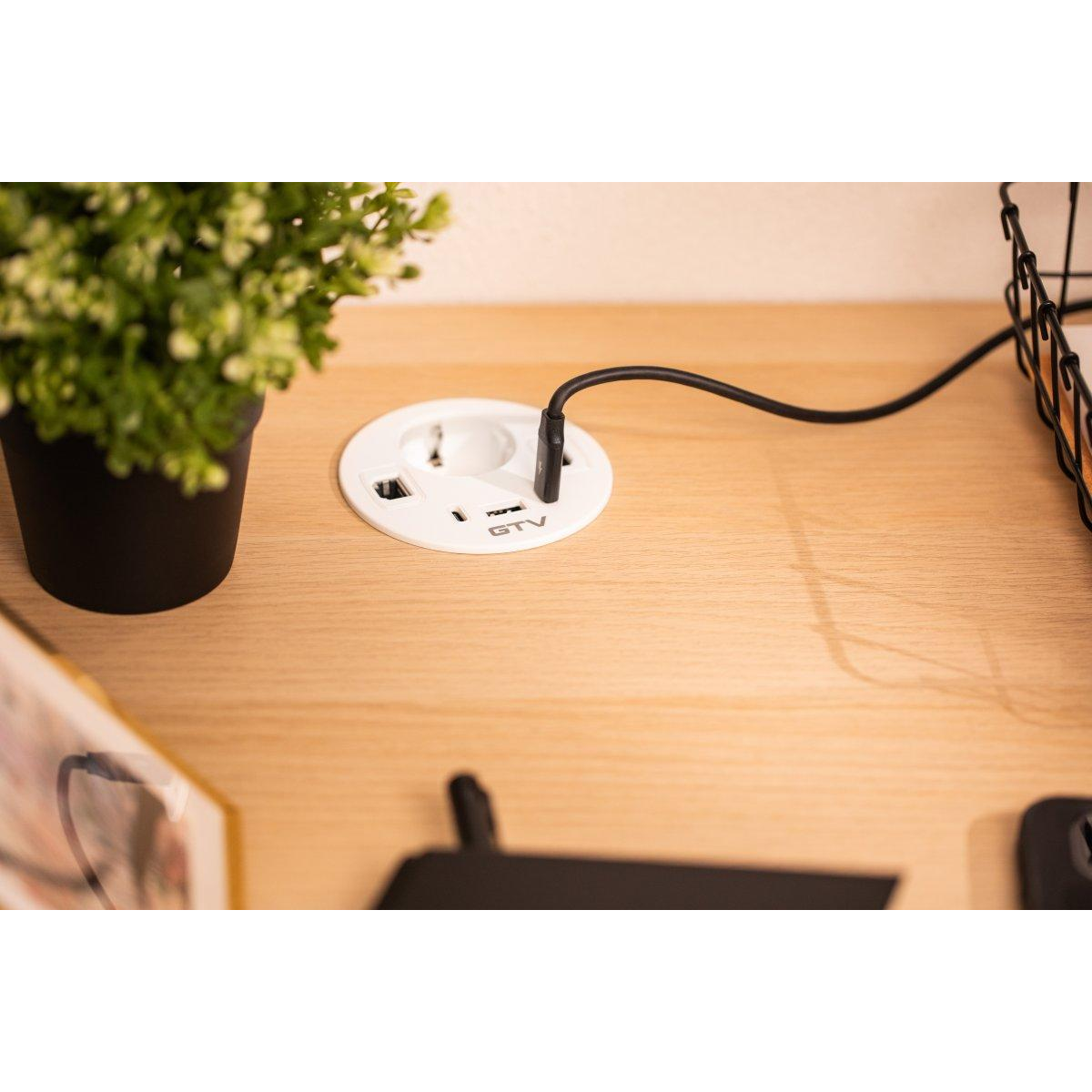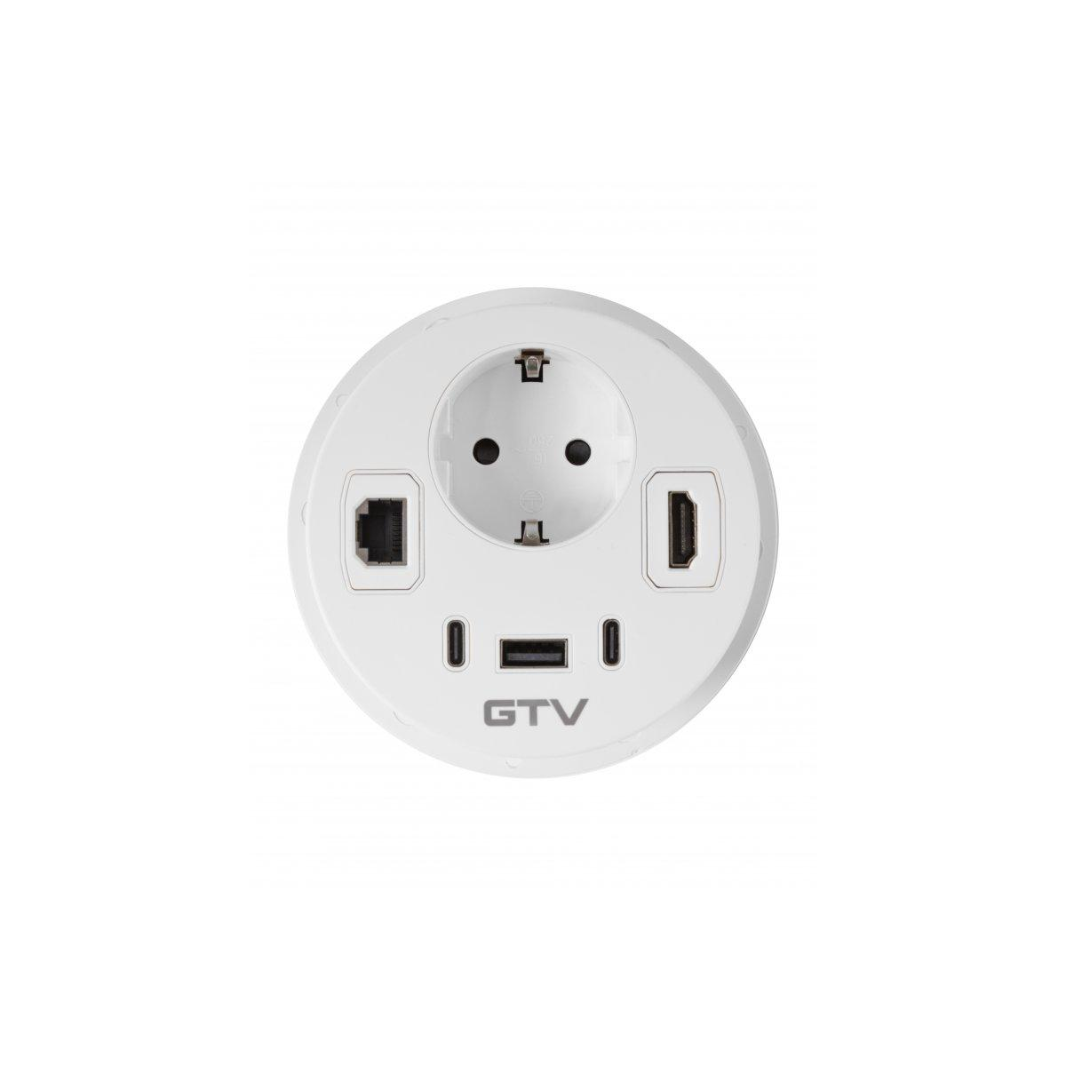 Меблева розетка GTV RONDO, 1xSHUKO, 1xUSB-A, 2xUSB-C, HDMI, RJ45 кабель 1.5 м, біла