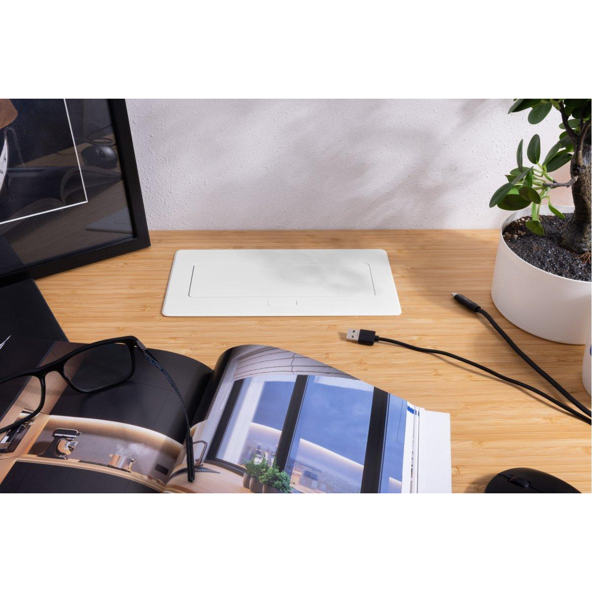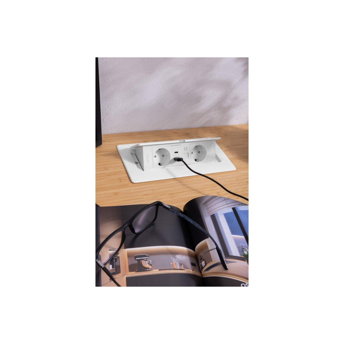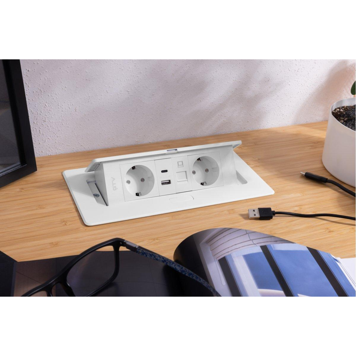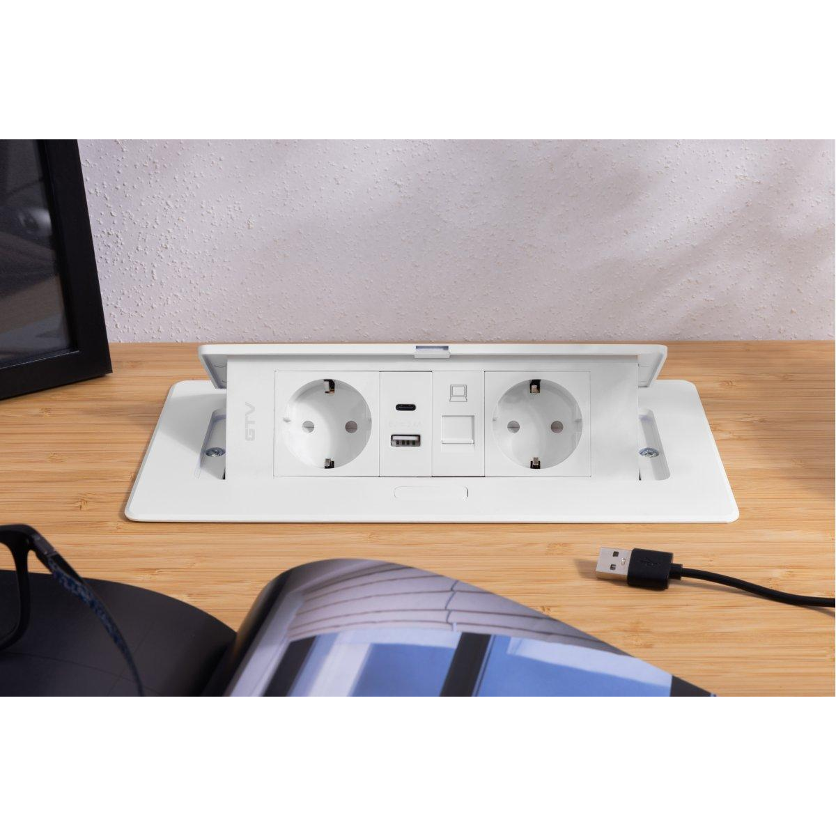 Меблева розетка GTV MULTISOFT, 2хSHUKO, USB A+C, RJ45, кабель 1.5 м, білий