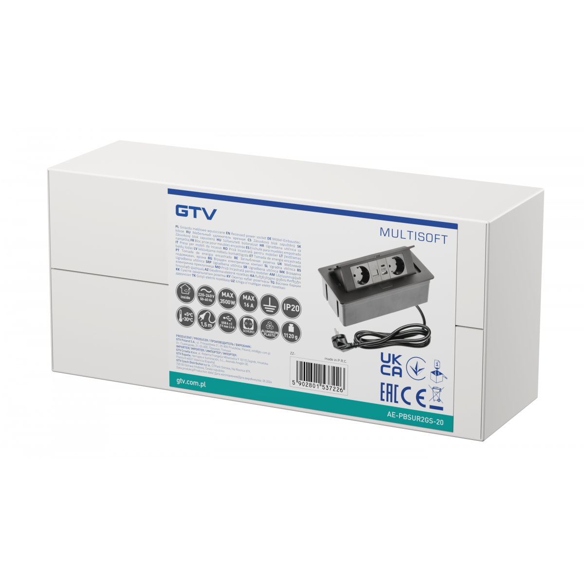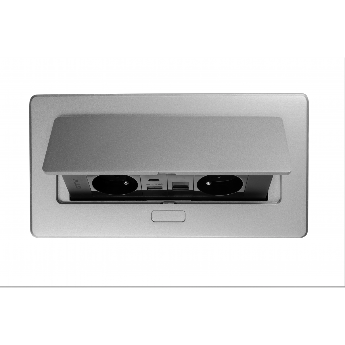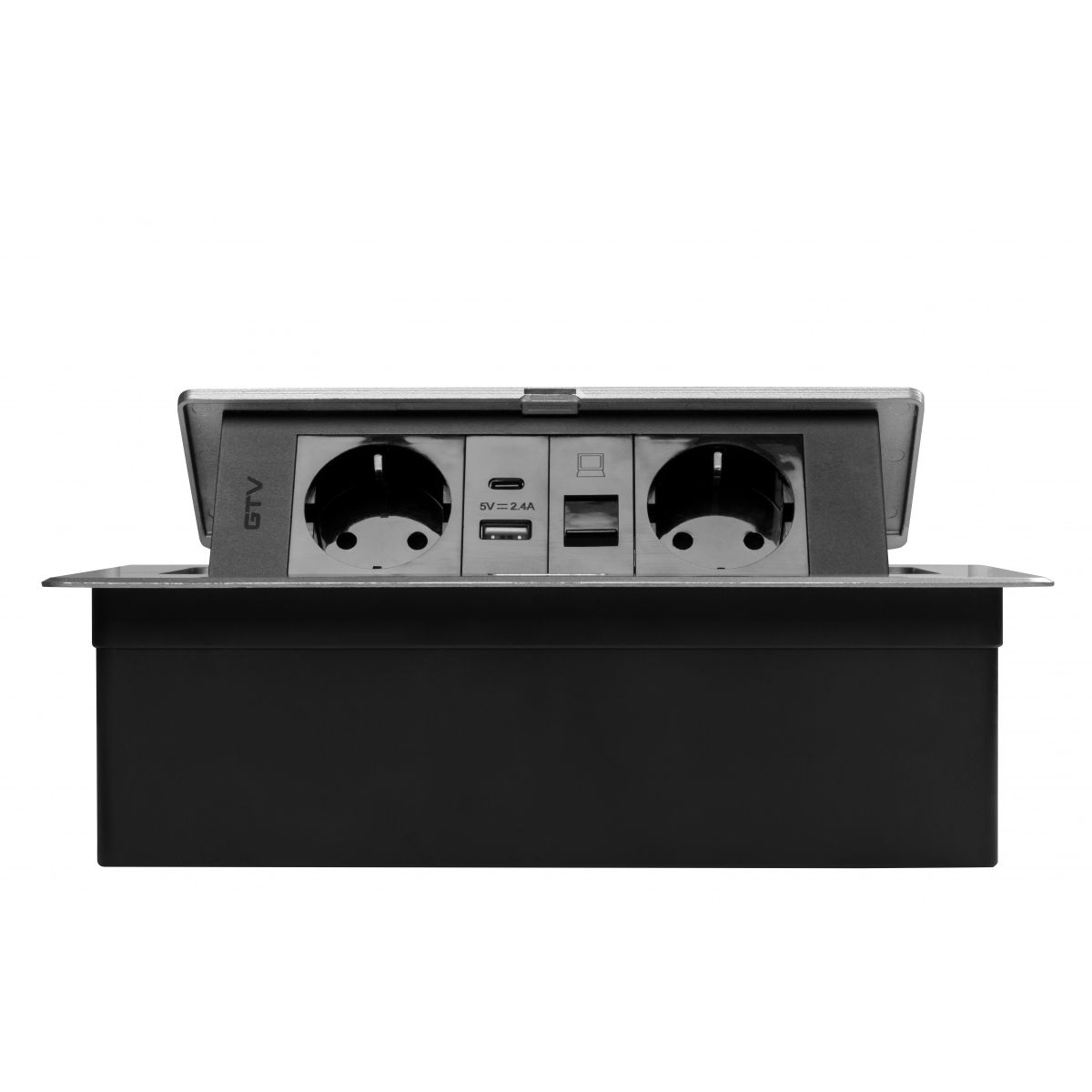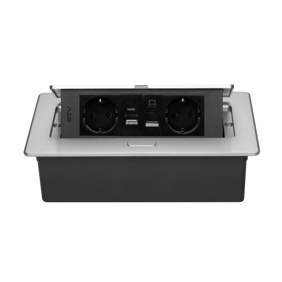 Меблева розетка GTV MULTISOFT, 2хSHUKO, USB A+C, RJ45, кабель 1.5 м, алюміній