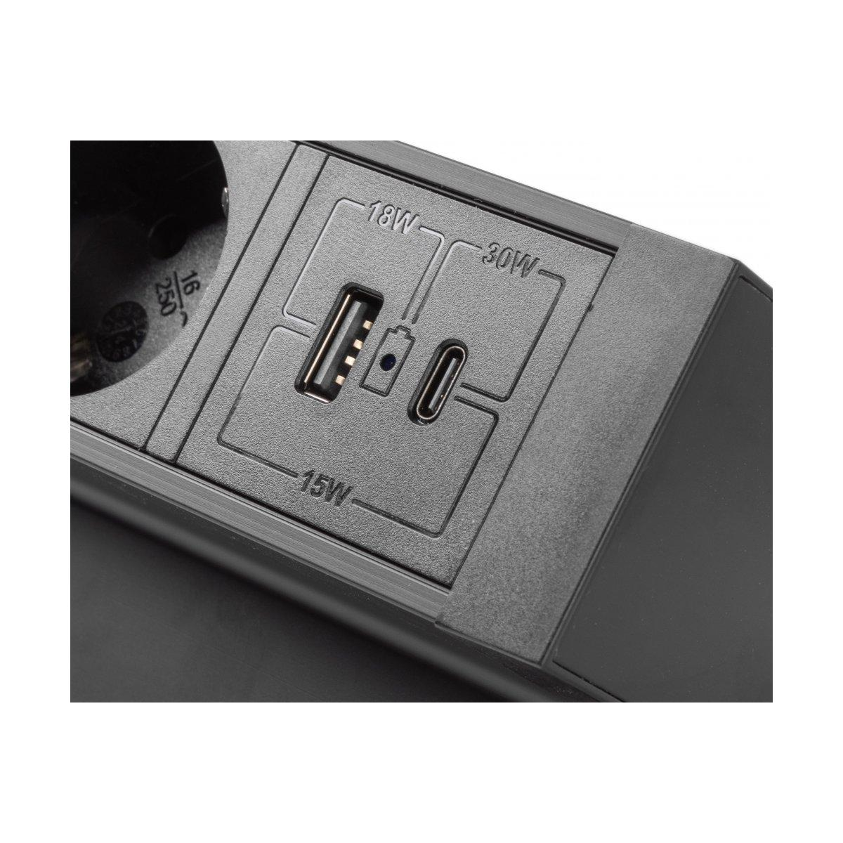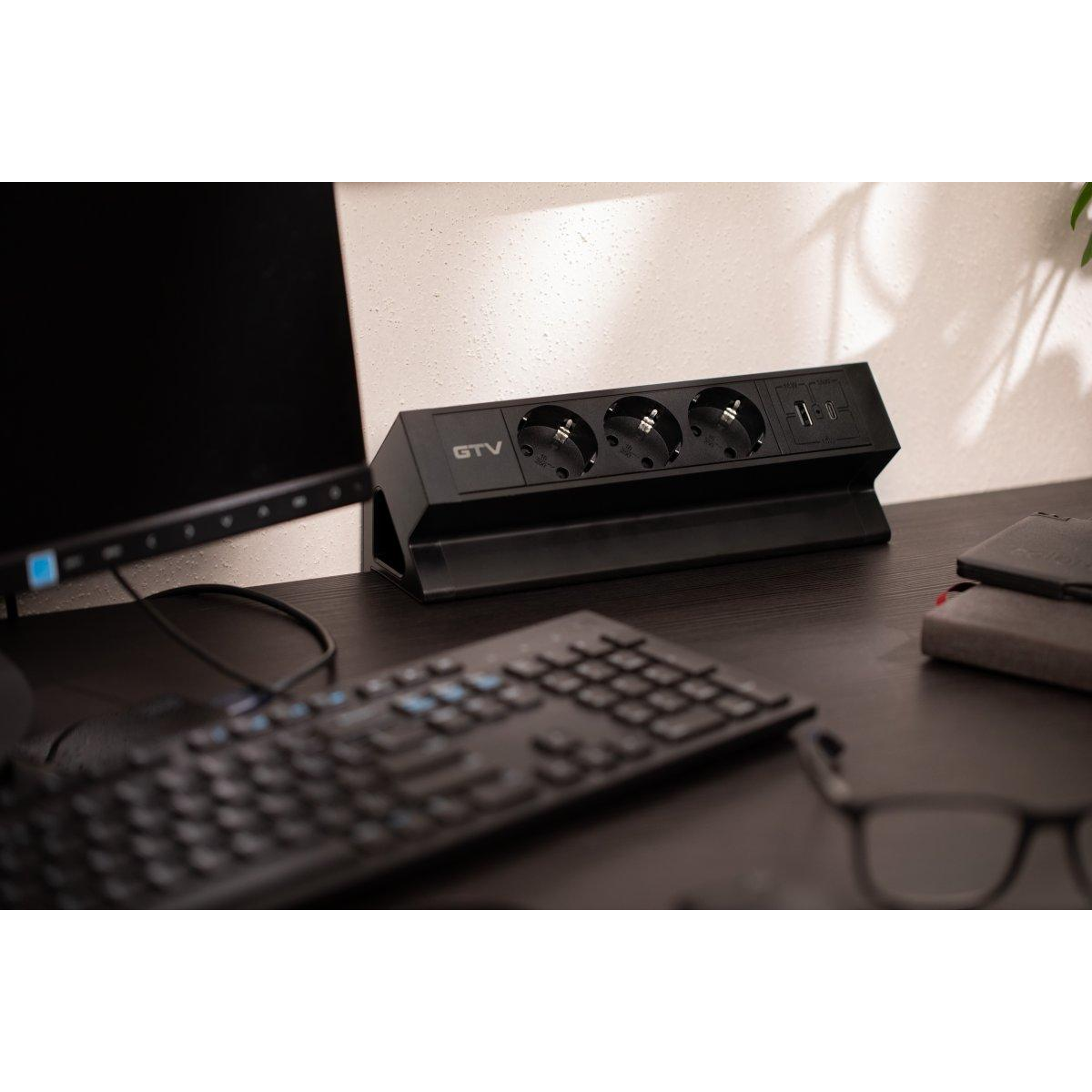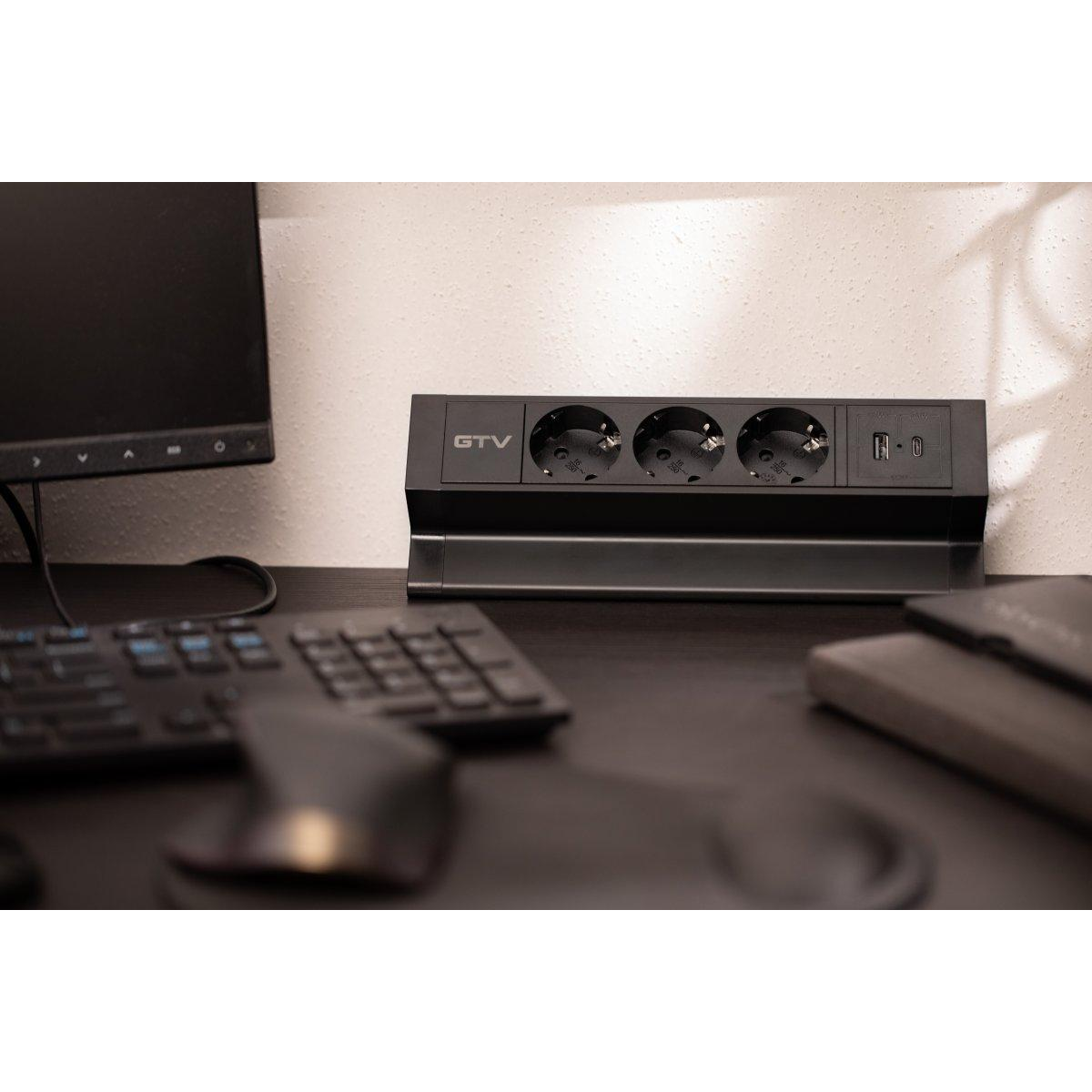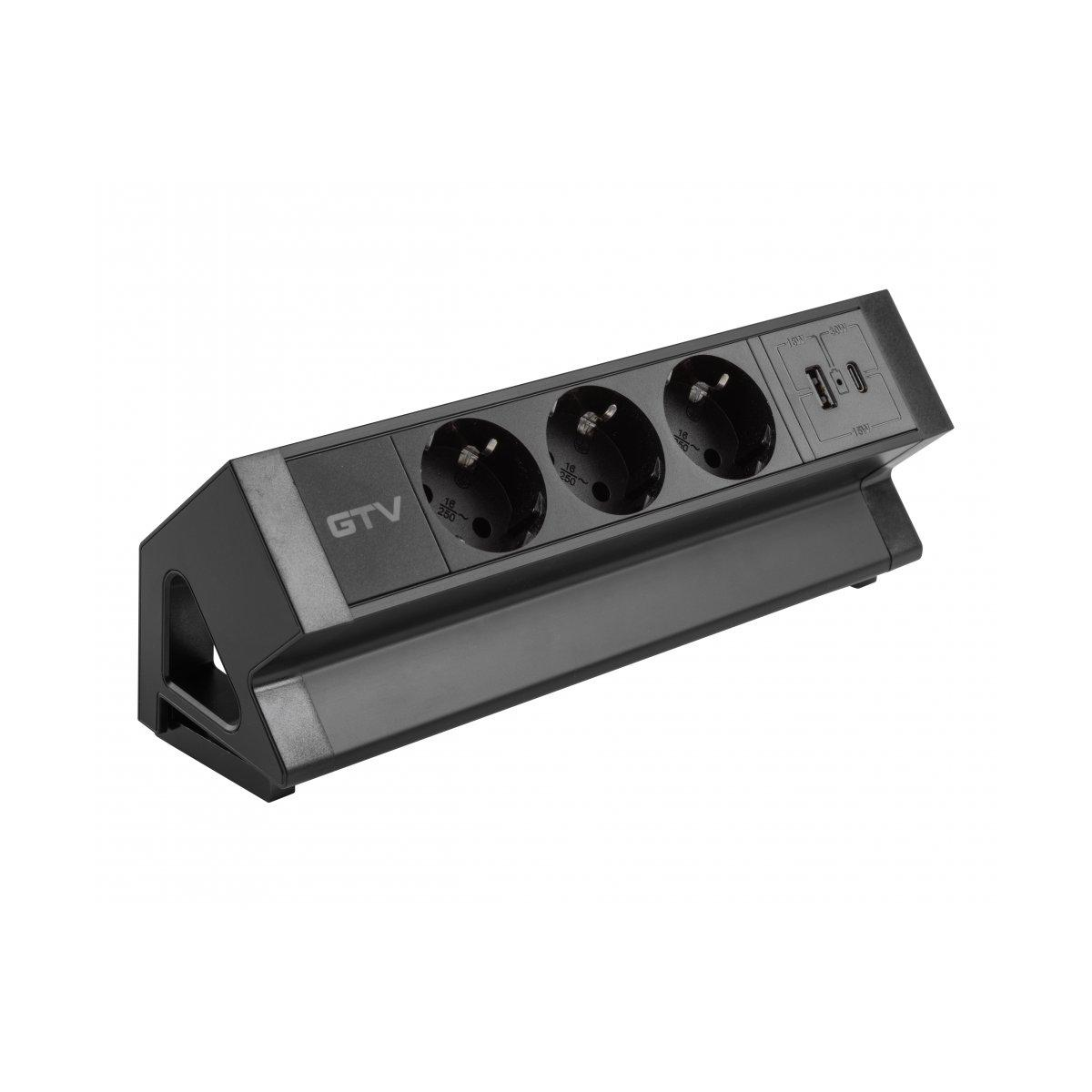 Меблева розетка GTV BASCO, 3хSHUKO, USB A+C, кабель 1.5 м, чорна