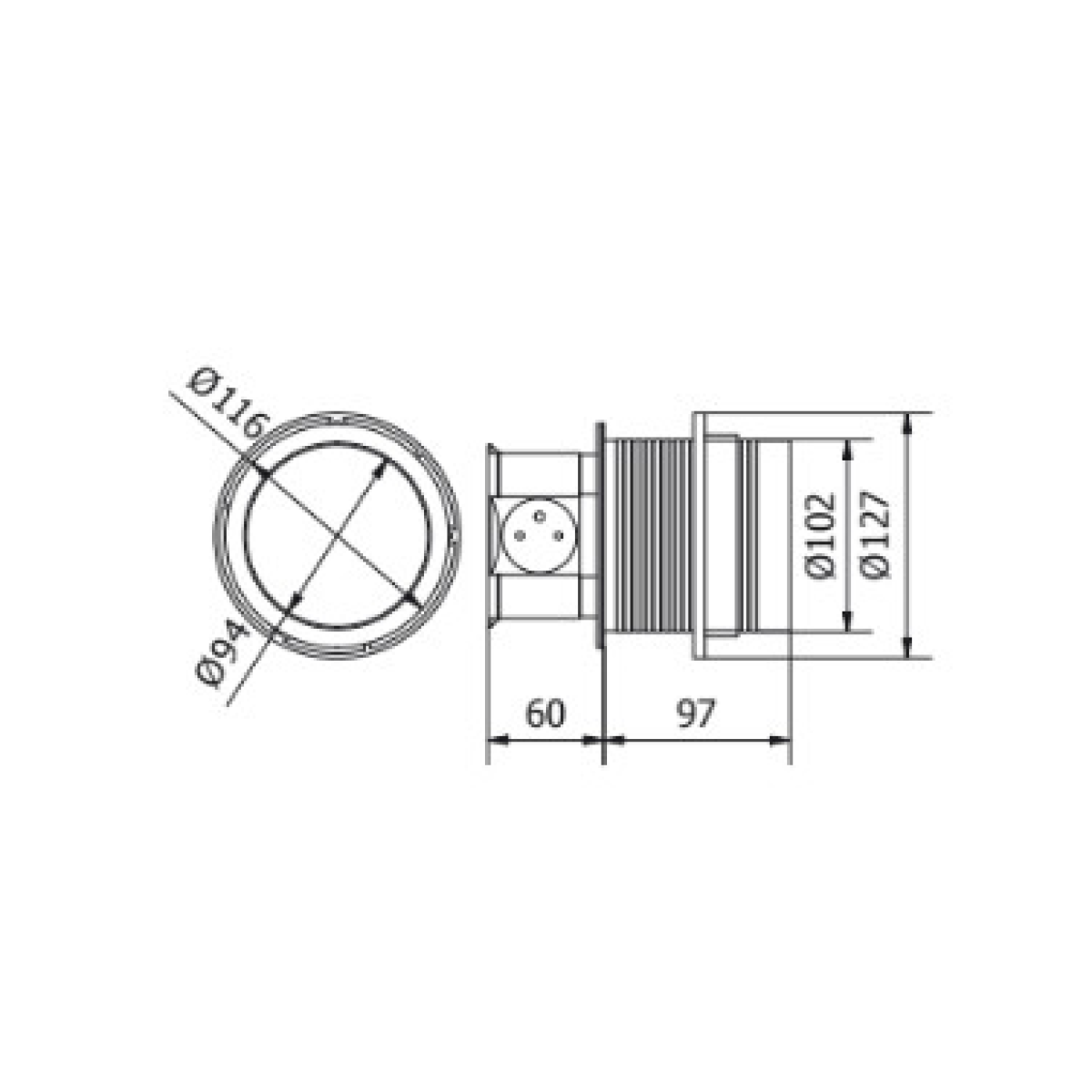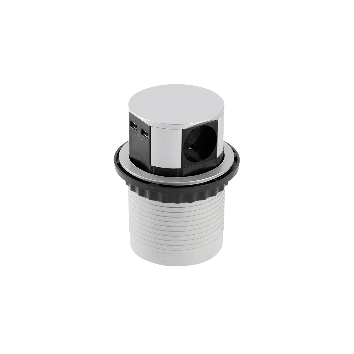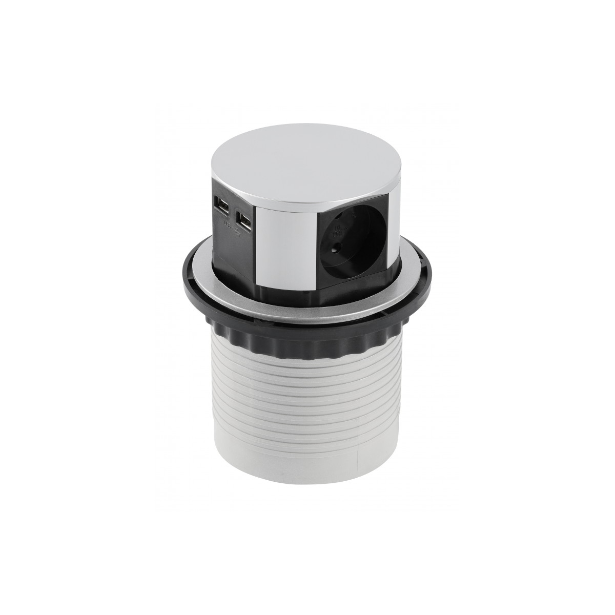 Подовжувач врізний в стіл GTV AE-BPW3S100U-53 COMFORT, 3xSCHUKO, 2xUSB 5V 2.4A, алюміній, кабель 1.5м