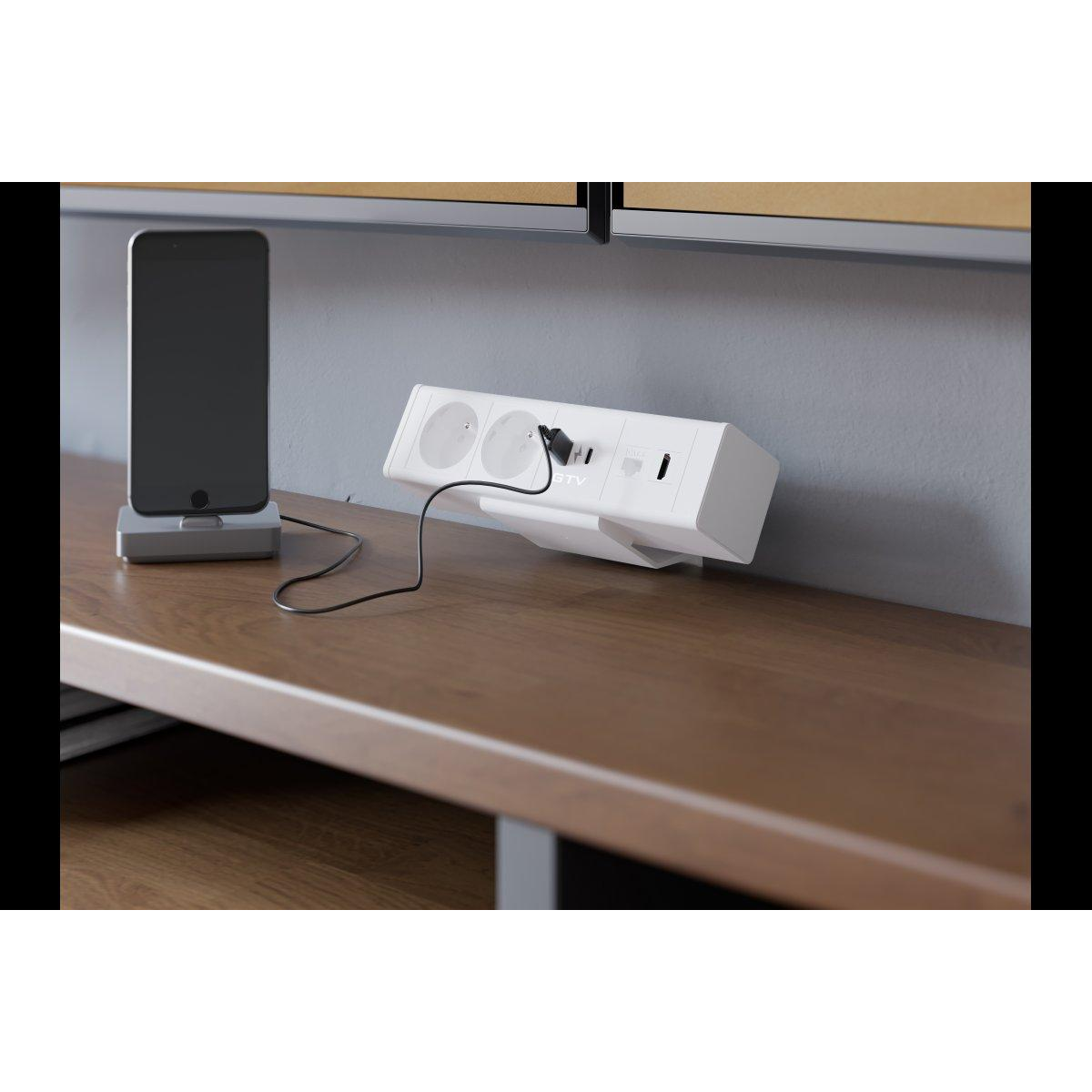 Подовжувач Прямокутний Накладний Bar, 2Xschuko, 1Xusb A, 1Xtype-C, 1Xrj45, 1Xhdmi білий