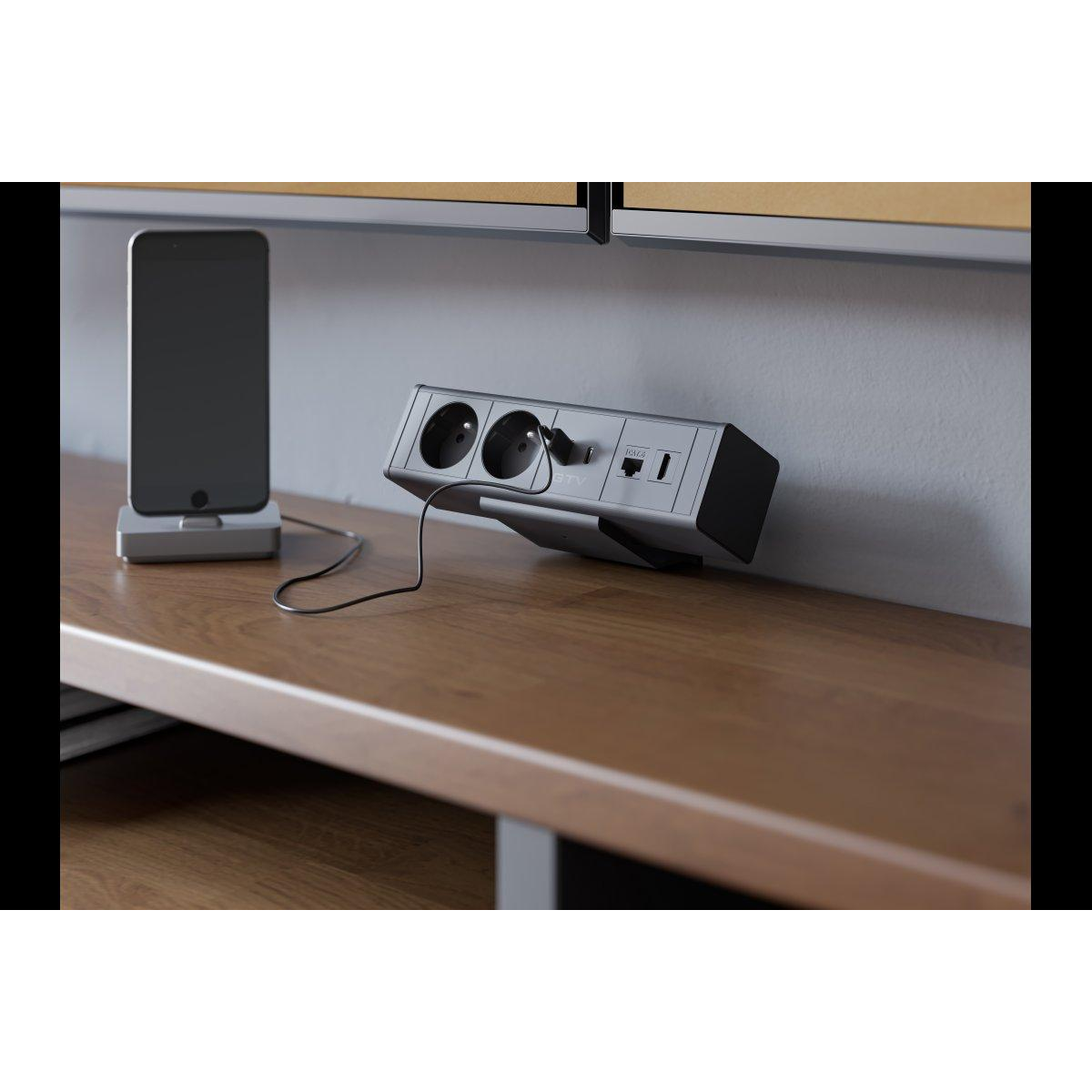 Подовжувач прямокутний накладний BAR, 2xSCHUKO, 1xUSB, 1xTYPE-C, 1xLAN, 1xHDMI, виделка дріт 1,5 м, чорний AE-GM2SBAR-20 Наведіть лад із кабелями, створюючи елегантний дизайн. Меблевий подовжувач BAR — дуже зручне рішення для дому та офісу. Сучасний тримач забезпечує простий і непомітний монтаж без потреби свердлити/фрезерувати отвори в стільниці. Завдяки цьому ефект виходить дуже естетичним. Компактне поєднання роз“ємів забезпечує зручну організацію кабелів в одному місці та завжди під рукою. Меблевий подовжувач BAR доступний у двох основних кольорах, що дає змогу легко підібрати кольори до верхньої частини меблів і стилю інтер“єру. Особливості AE-GM2SBAR-20: fast charge; дві розетки: schuko; мультимедійна версія: HDMI та RJ45; заряджання USB A+C потужністю 20W, 18W Fast Charge, 1x HDMI; просте під“єднання HDMI та RJ45 через відповідні роз“єми; колір чорний; європейське виробництво.