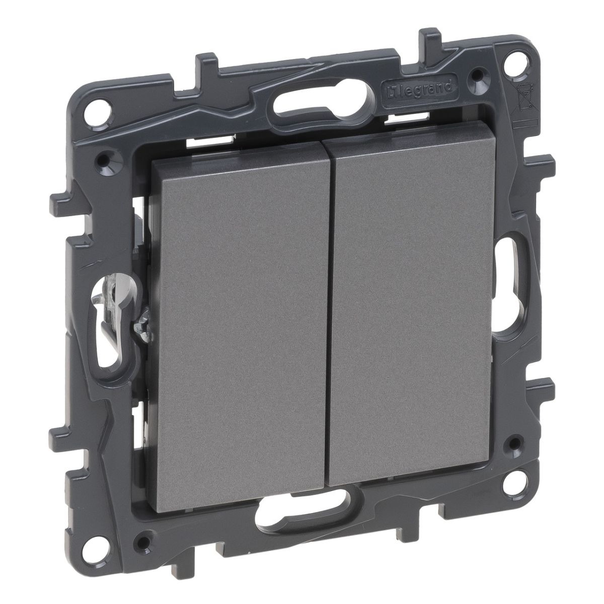 Вимикач прохідний двоклавішний, сталь, Niloe Step Legrand