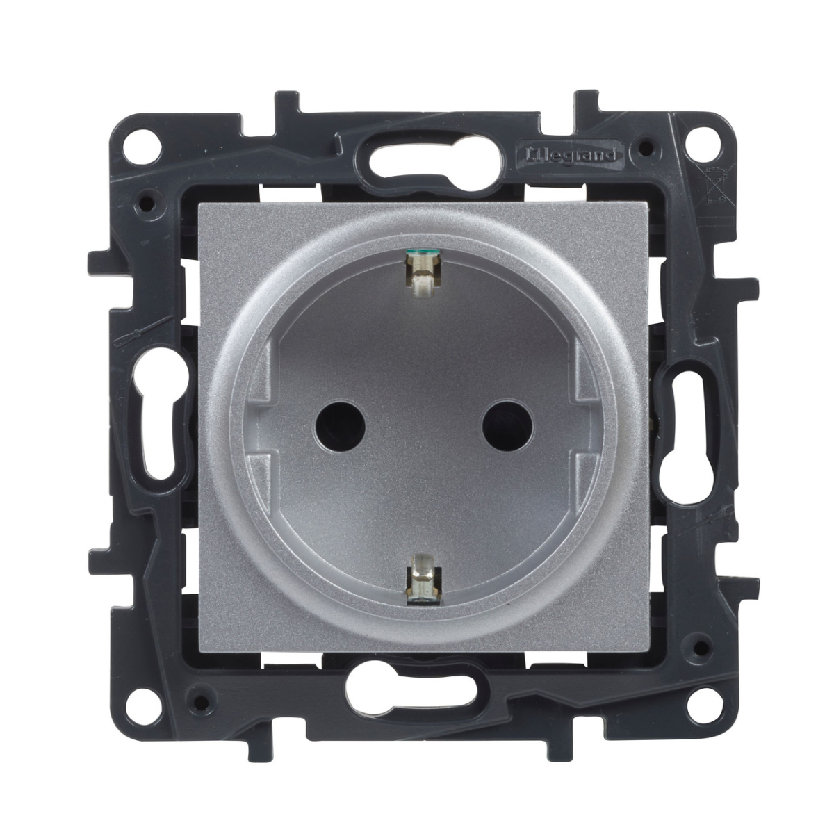 Розетка електрична зі шторками, сталь, Niloe Step Legrand