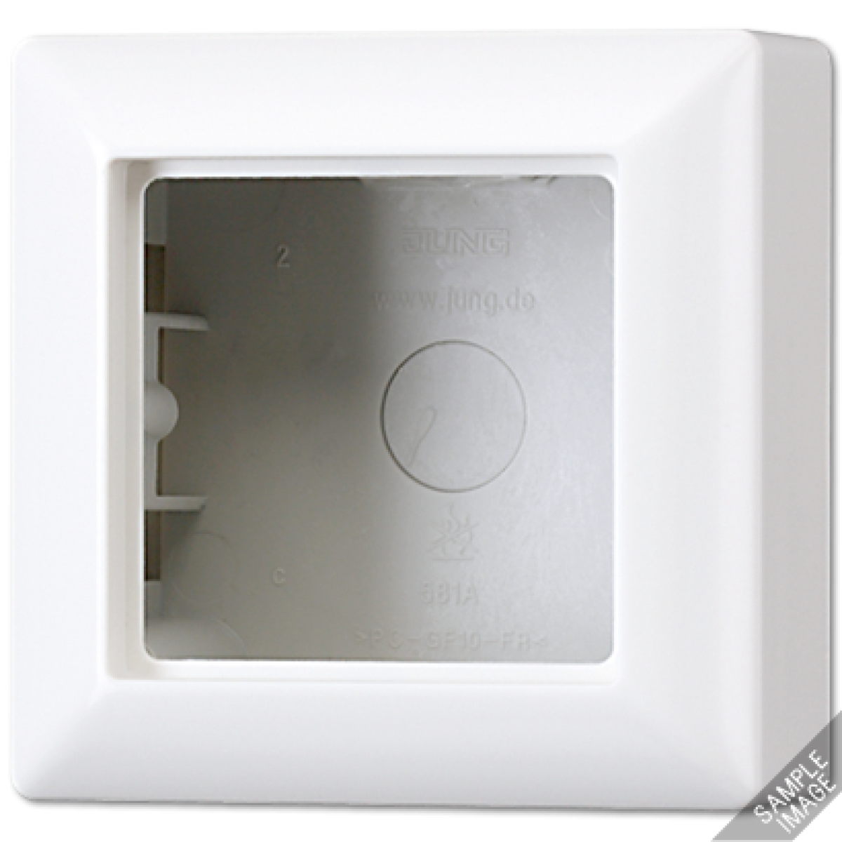 з негорючим підставою і вбудованою рамкою для вбудованих виробів сері AS (крім вимикача для замкового механізму арт.: ..15 і поворотного вимикача на 3 положення) 1-ва, 85 x 85 x 47 мм Запчастина: монтажний корпус арт.: 581 A The max. load of dimmers applies also to installation into surface caps. Only when several dimmers are used in combination, the max. load of the installed dimmers has to be reduced by 20 %.