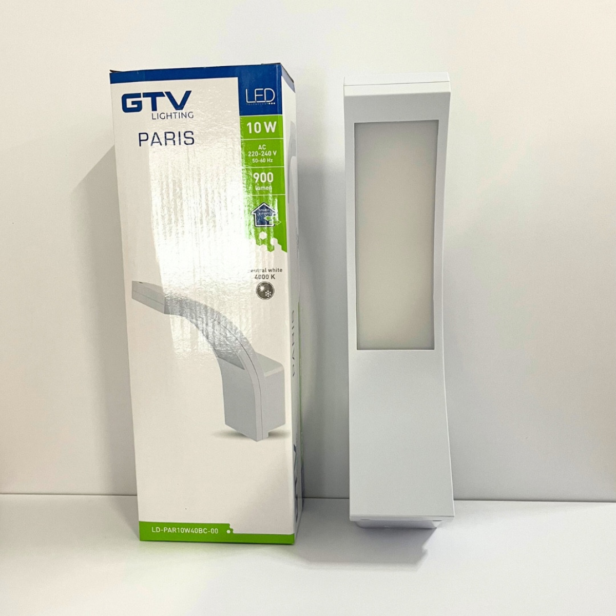 Світильник 10W Настінний Фасадний Світлодіодний Paris Led, Ip54, 140°, 4000K, Білий (Ld-Par10W40Bc-00) GTV