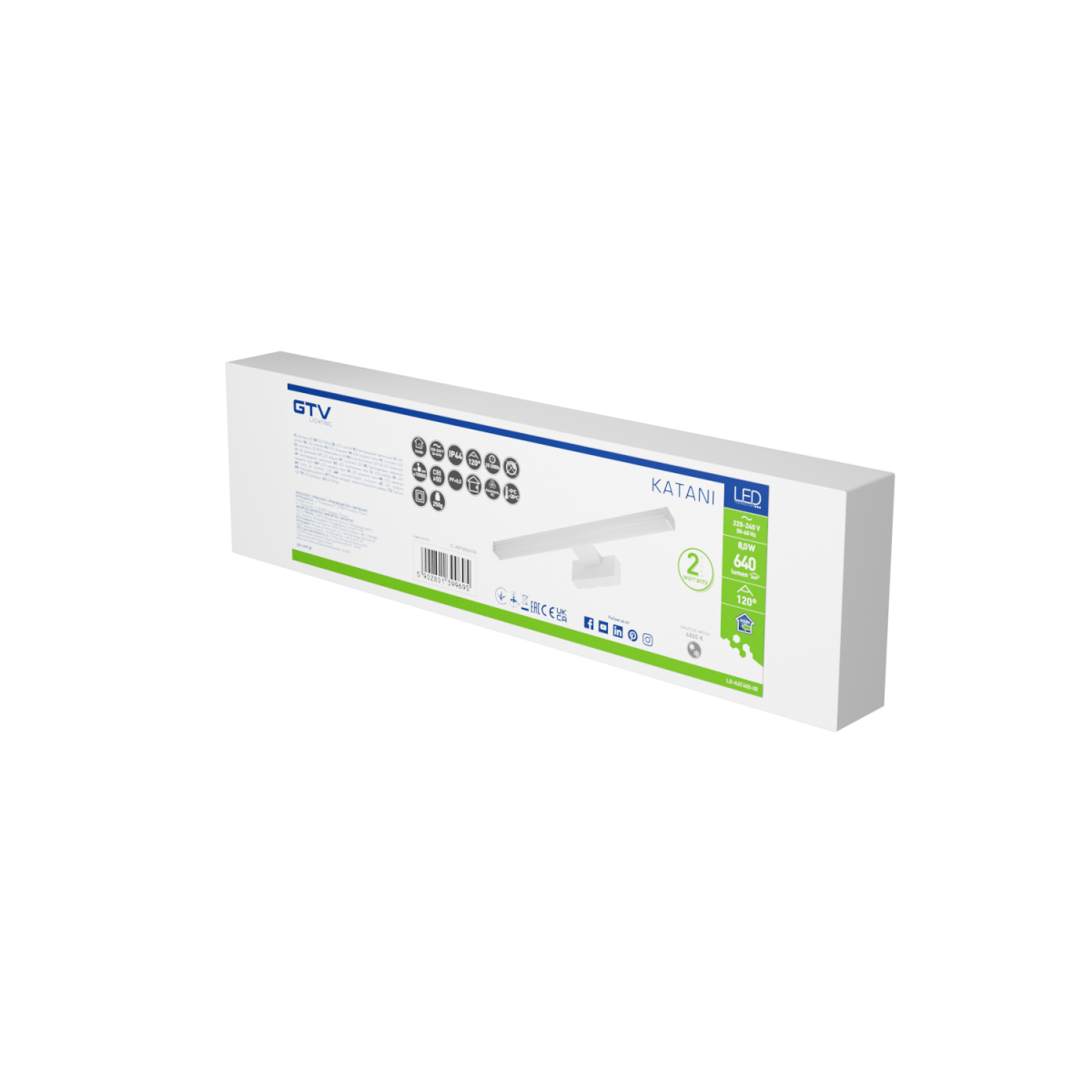 Світильник настінний GTV Katani 400 мм, 8W, 4000 К, IP44, білий (LD-KAT400-00)