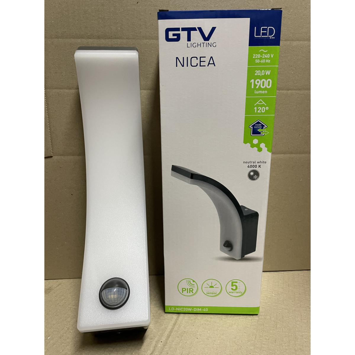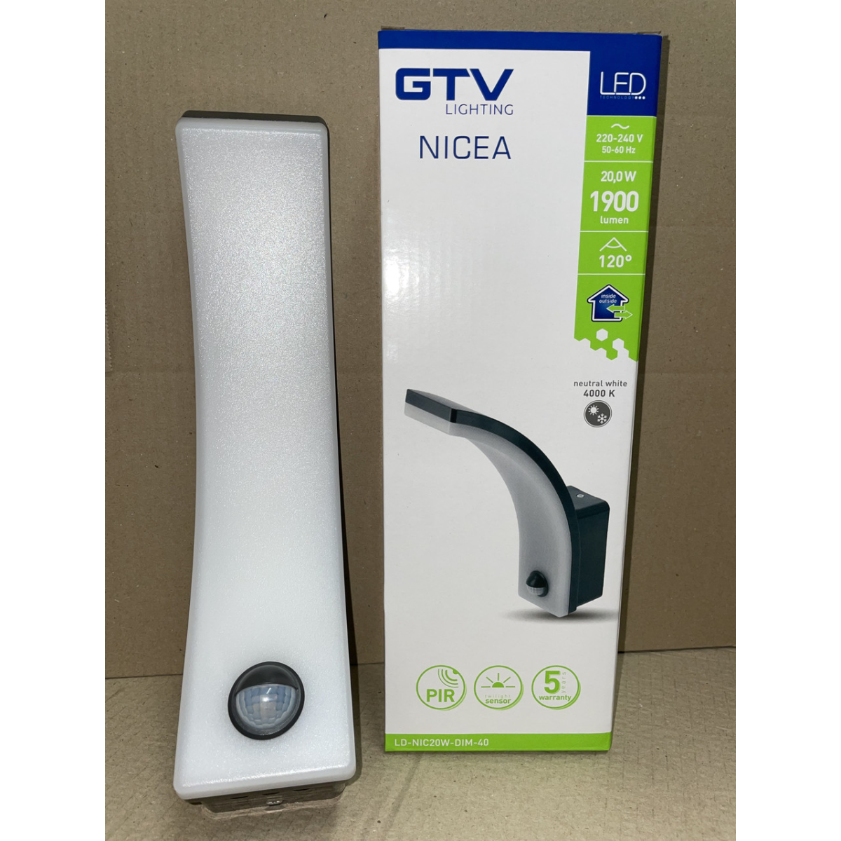 Світильник 20W GTV NICEA з датчиком руху, 4000K, IP65, DIM, чорний