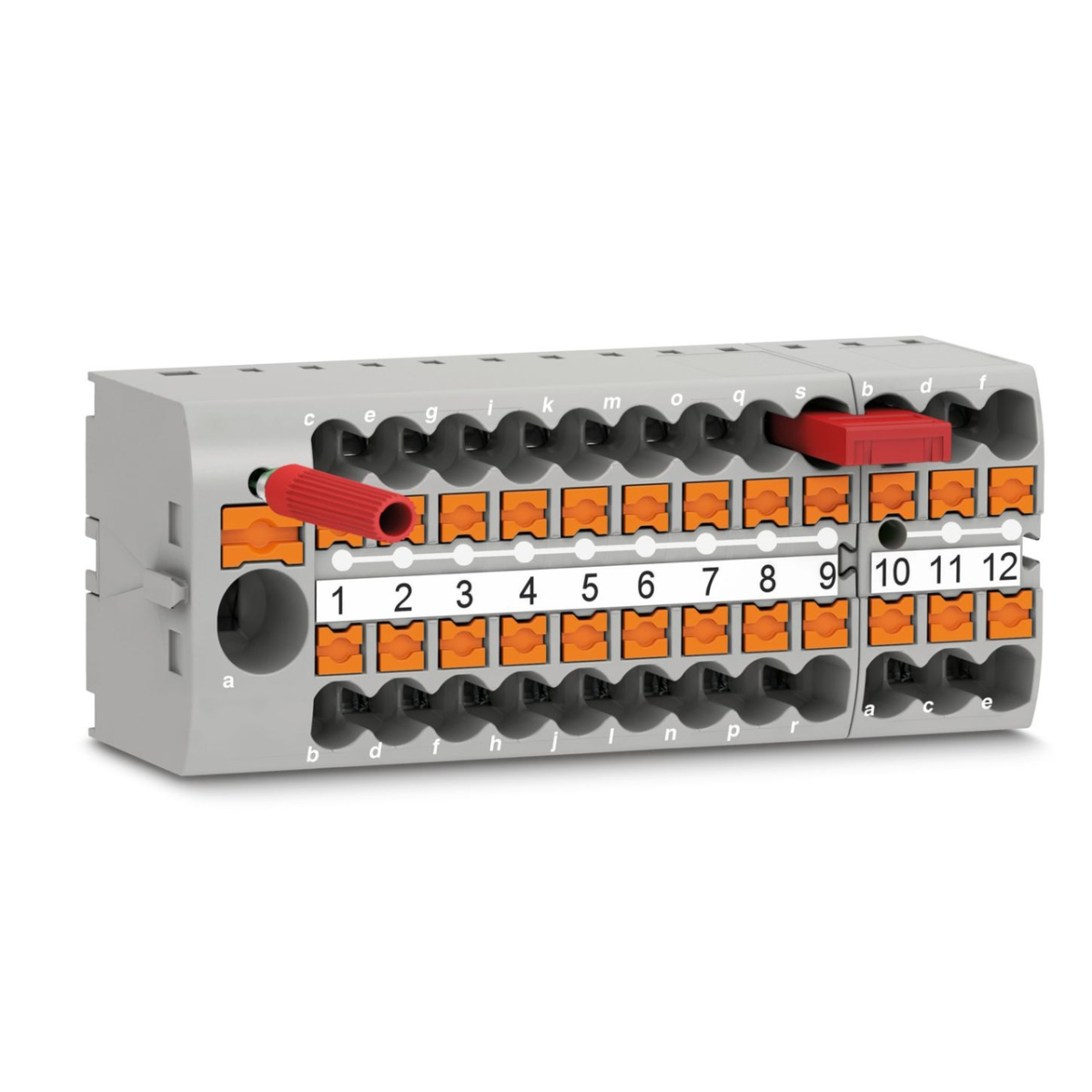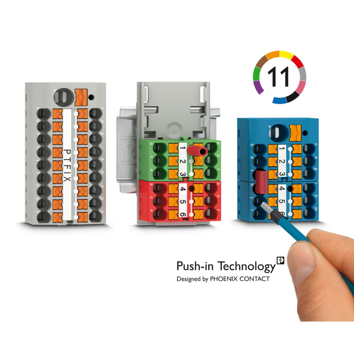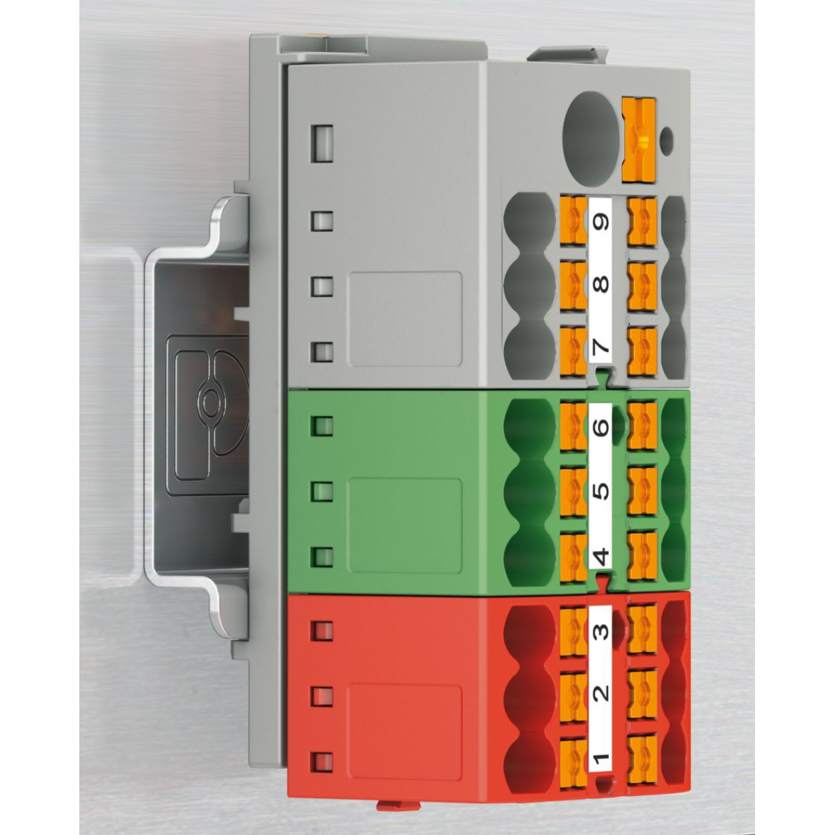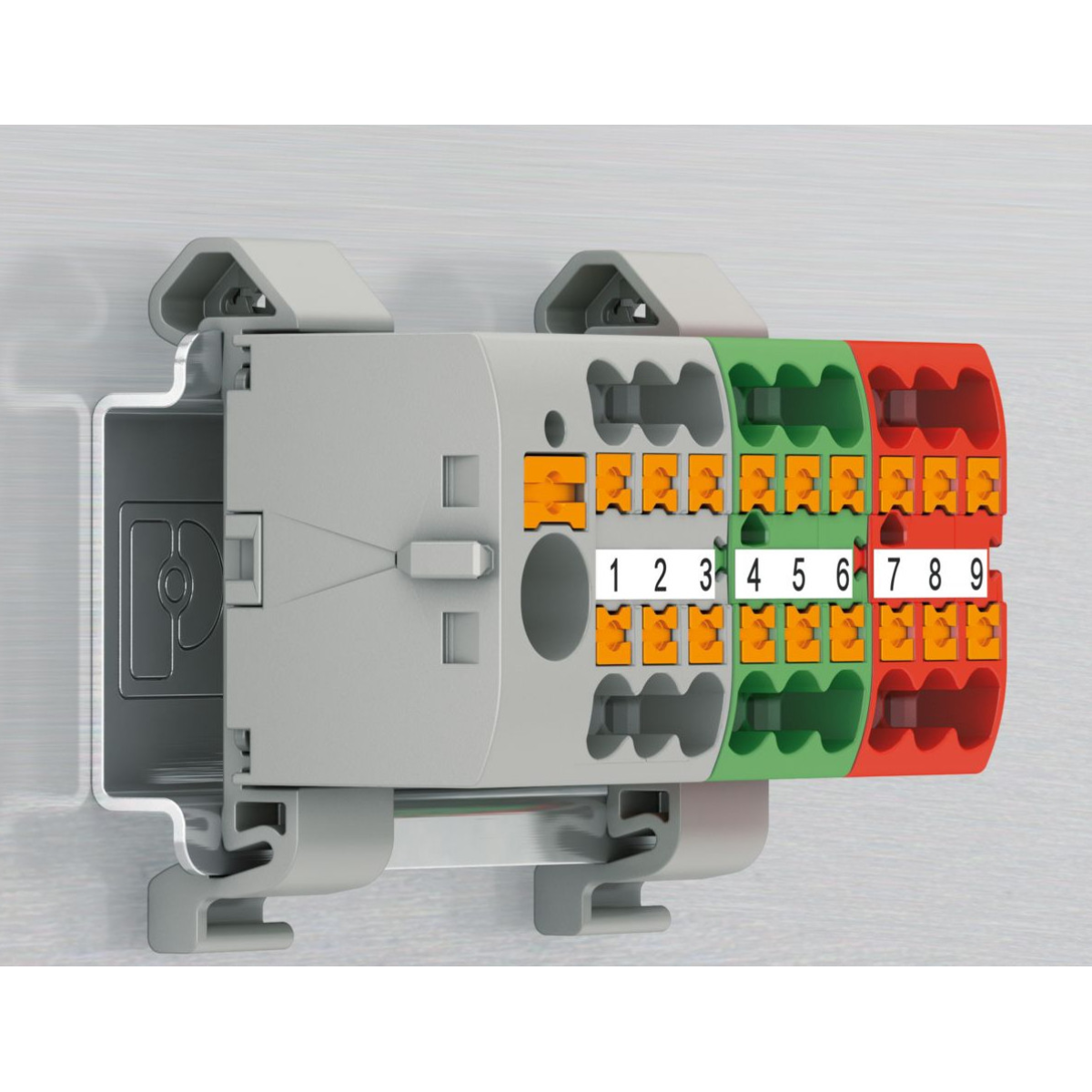 Блок розподільний ENERGIO PTFIX 6 мм2 12x2.5мм2 Розподільний блок, Базова клема з живленням, номінальна напруга: 450 В, номінальний струм: 24 A, кількість точок під“єднання: 13, тип під“єднання: Затискачі Push-in, Відвід, січення: 0,14 мм2 - 4 мм2, Затискачі Push-in, Групове під“єднання, Розрахунковий переріз: 6 мм2, січення: 0,5 мм2 - 10 мм2, тип монтажу: кріплення засувками на адаптері для монтажної рейки, Прямий монтаж за допомогою фланця, Підвісний, колір: сірий
