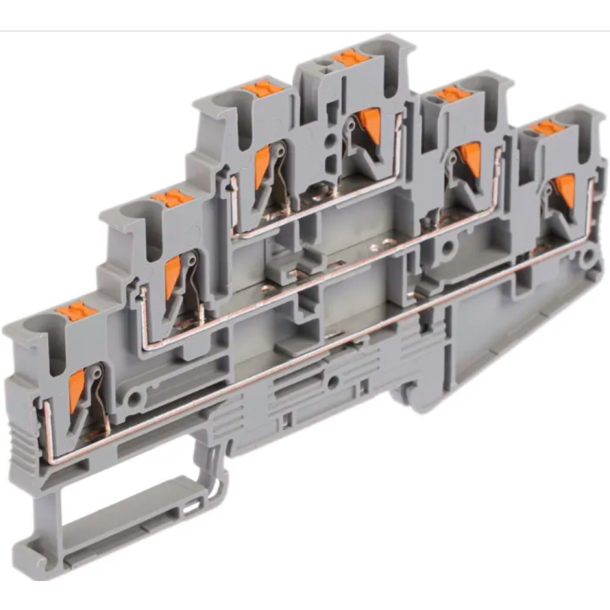 Клемна колодка PT-2-222 2.5мм2 3-рівнева 1-1, 1-1, 1-1 на DIN-рейку сіра
