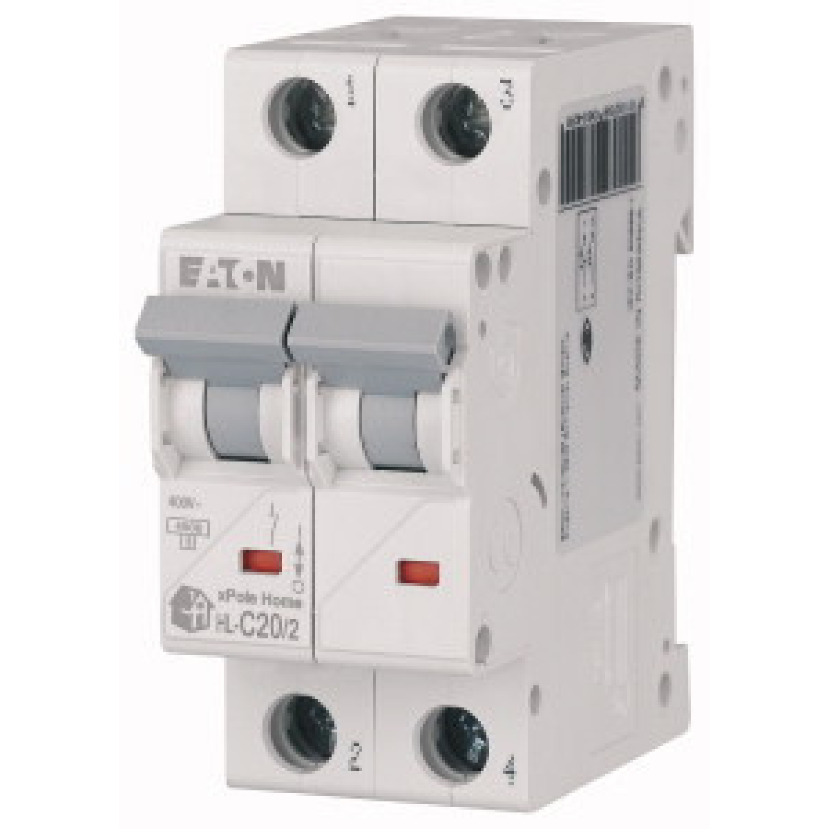Модульний автоматичний вимикач EATON серії xPole Home HL-C20/2 2-полюсний 20А, характеристика вимкнення “З“, що вимикає здатність 4,5кА
