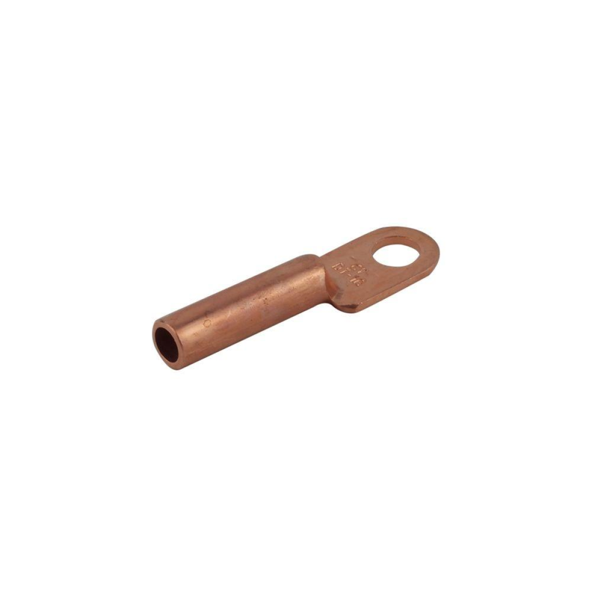 Накінечники кабельні мідні застосовуються для кінець проводів і кабелів з мідними жилами і закріплюються на жилах опресовуванням. Накінечники мідні виготовляються із мідної труби. Наконечники кабельні на сьогоднішній момент є єдиним способом виконати підведення кабелю з великим перетином жил. Накінечник мідний одягається на жилу кабелю та опресовується гідравлічним або ручним пресом. Такий метод жорстко скріплює наконечник та кінець кабелю, забезпечуючи надійне з“єднання. Характеристики: Матеріал: мідь; Вид: під гвинт; Діаметр кільця: 8,5 мм; Перетин дроту: 10 мм; Упаковка: 20 шт.
