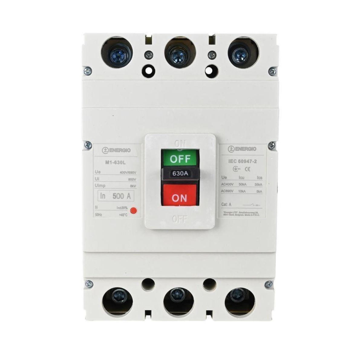 Електричний автомат ENERGIO M1-630L 500А – надійний захист мережі Цей силовий автоматичний вимикач запобігає перевантаженням і служить для захисту електромереж від коротких замикань. Триполюсний автомат з номінальним струмом 500А і вимикальною здатністю 50кА призначений для роботи в промислових і комерційних електроустановках. Завдяки тепловому та електромагнітному розчіплювачам вимикач ефективно реагує на критичні струмові навантаження, запобігаючи перегріву та пошкодженню обладнання. Висока електрична зносостійкість (до 3 тис. циклів) і механічна міцність (до 4 тис. циклів) забезпечують тривалий термін служби навіть при інтенсивній експлуатації. ENERGIO M1-630L відповідає міжнародному стандарту IEC 60947-2 і розрахований на роботу в трифазних мережах 380В 50Гц. Пристрій оснащений дугогасною камерою яка підвищує безпеку вимкнення в аварійних ситуаціях. Вимикач монтується на панель, має компактний габарит 630L і ступінь захисту IP20, що робить його зручним для встановлення в розподільні щити та електрощитове обладнання. Технічні характеристики корпусного вимикача: Характеристика Значення Номінальний струм, In: 500А Кількість полюсів: 3 Габарит: 630L Електрична зносостійкість: 3 тис. циклів Механічна зносостійкість: 4 тис. циклів Переваги силового автомата: Надійний захист від перевантаження та короткого замикання. Підходить для промислових і комерційних об“єктів. Висока вимикальна здатність 50кА. Відповідність стандартам безпеки IEC 60947-2. Зручний монтаж і компактний розмір. Де купити щитовий автоматичний вимикач з доставкою по Києву та Україні? Замовити автоматичний вимикач ENERGIO M1-630L 3P 500А можна в нашому інтернет-магазині. Ми пропонуємо широкий асортимент автоматів за доступною ціною з можливістю замовлення онлайн. Забезпечте безпеку вашого електрообладнання з якісними рішеннями для трифазних мереж!