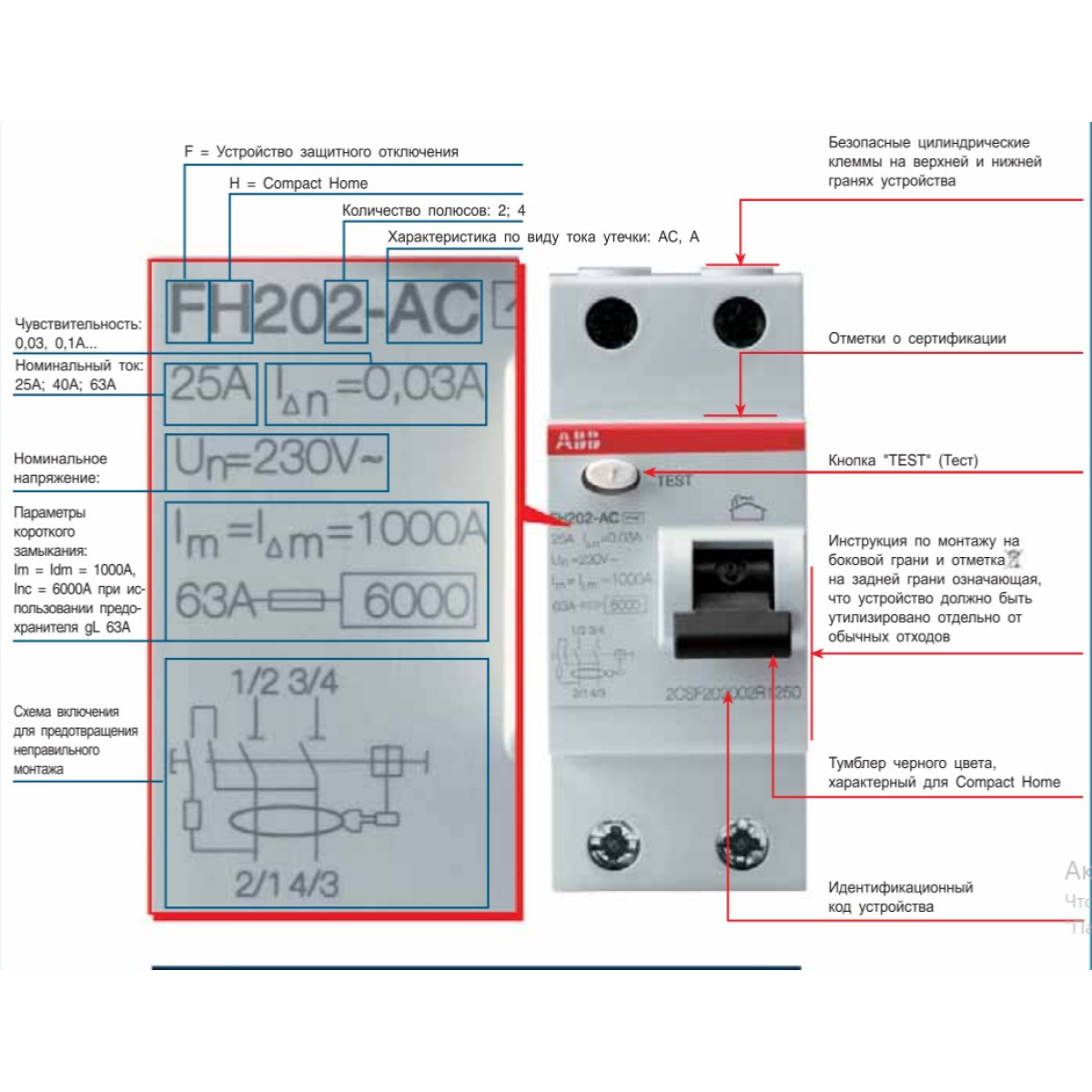Пристрій захисного відключення ( диференціальне реле) ABB FH202AC-25/0,03