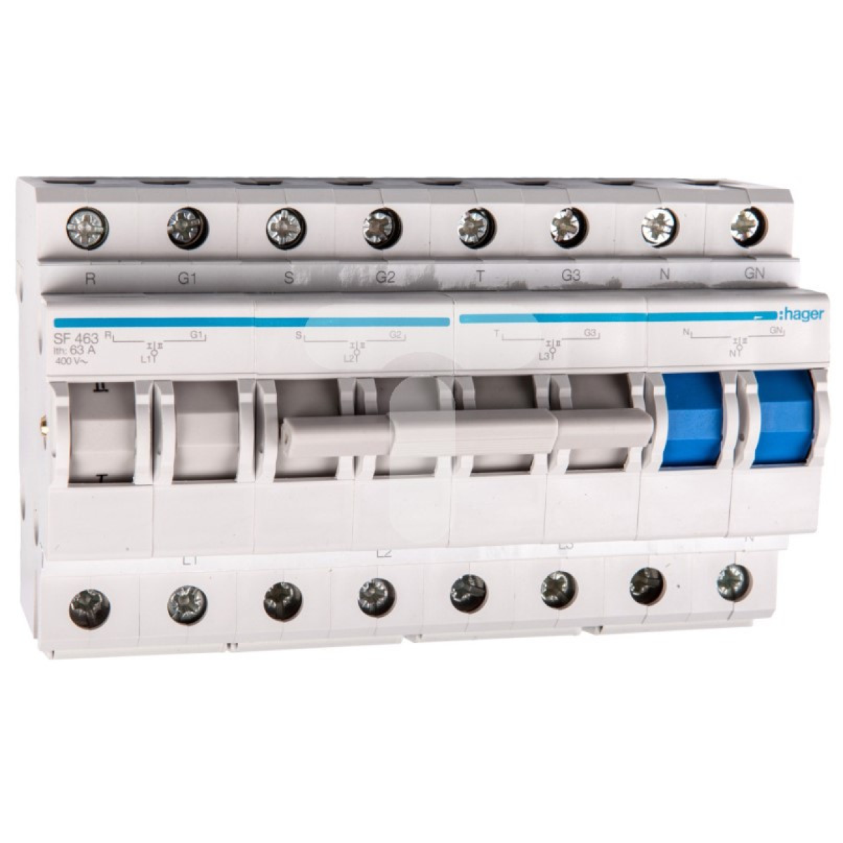 Перемикач навантаження Hager SF463 трипозиційний 4P 63A 1-0-2 240/415V~