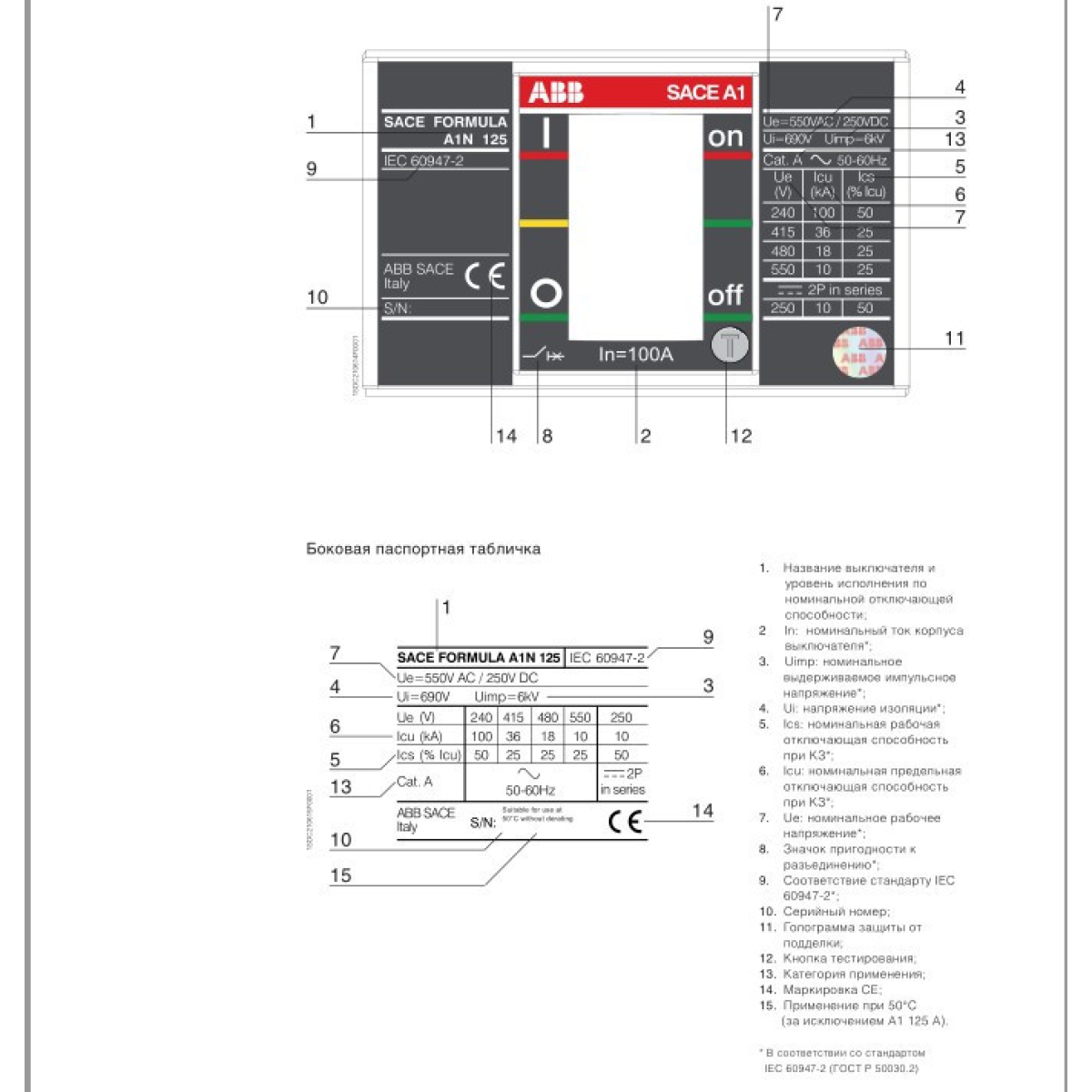 Номинальная отключающая способность (Icn) 25000