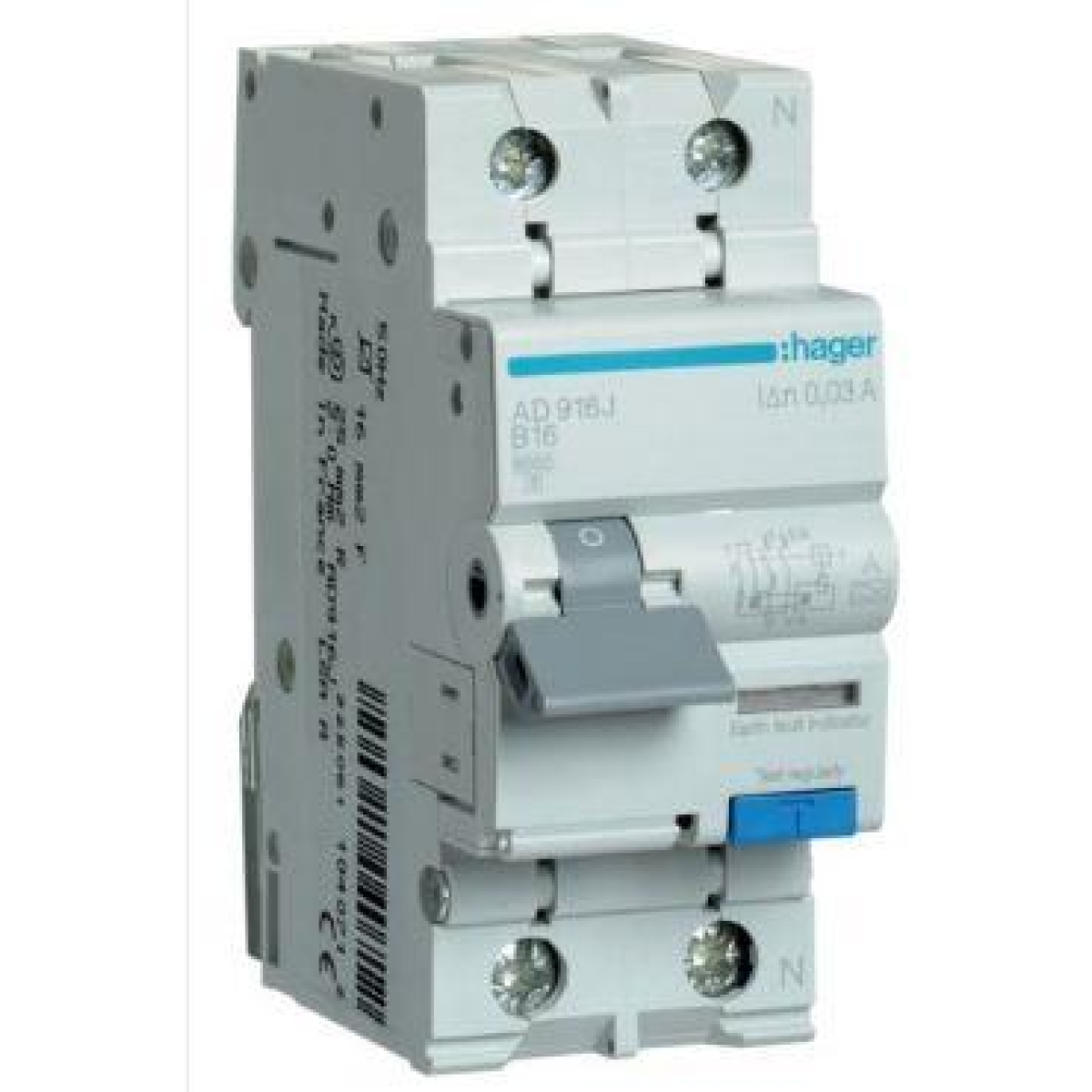Диференційний автомат Hager 1+N B16/30mA 6кA,тип AD916J