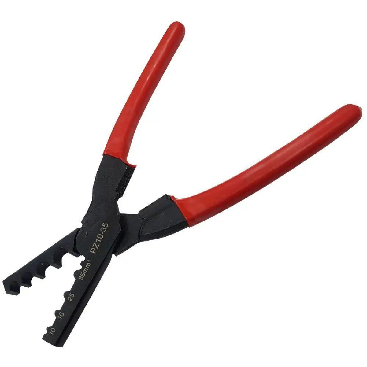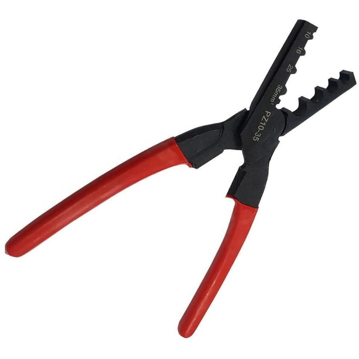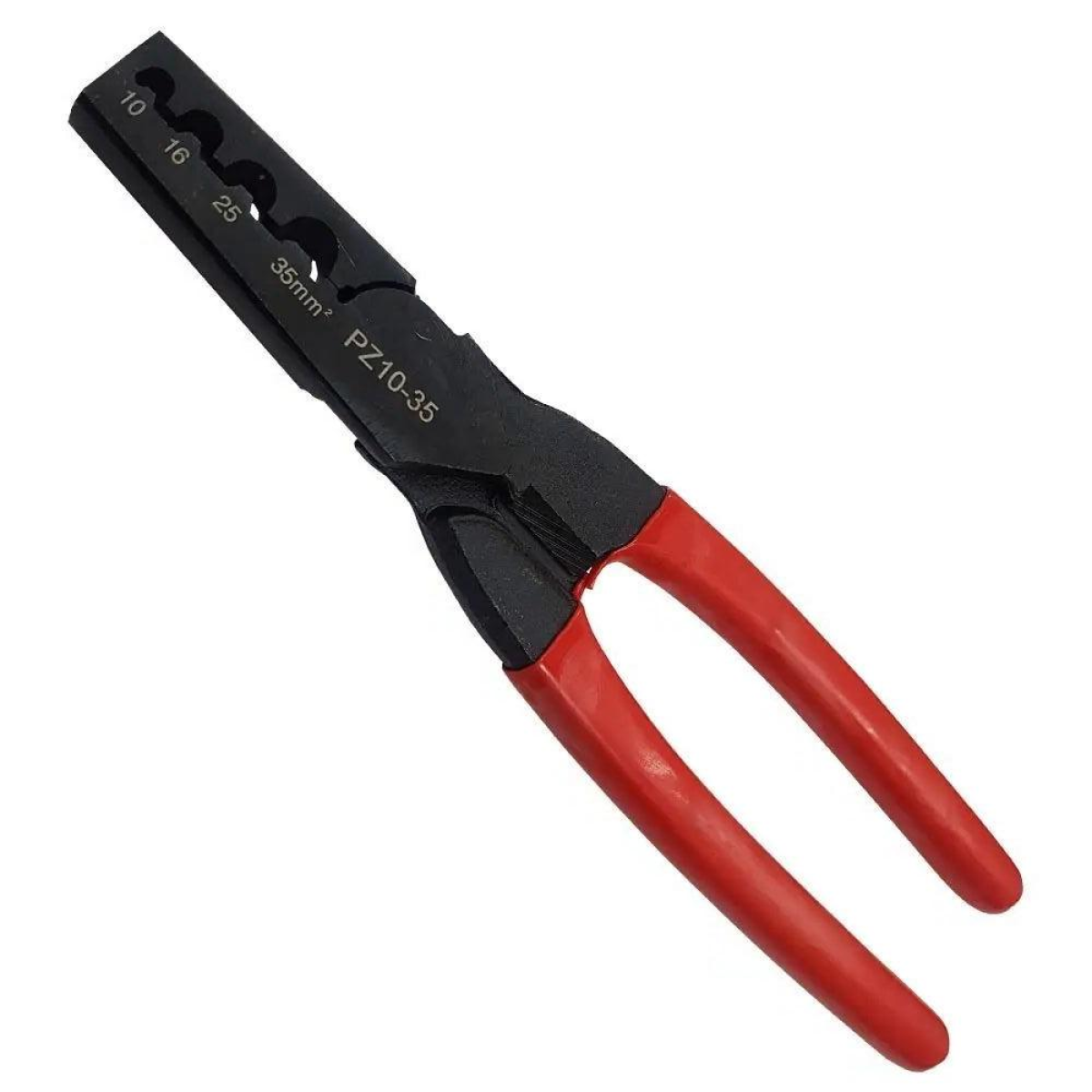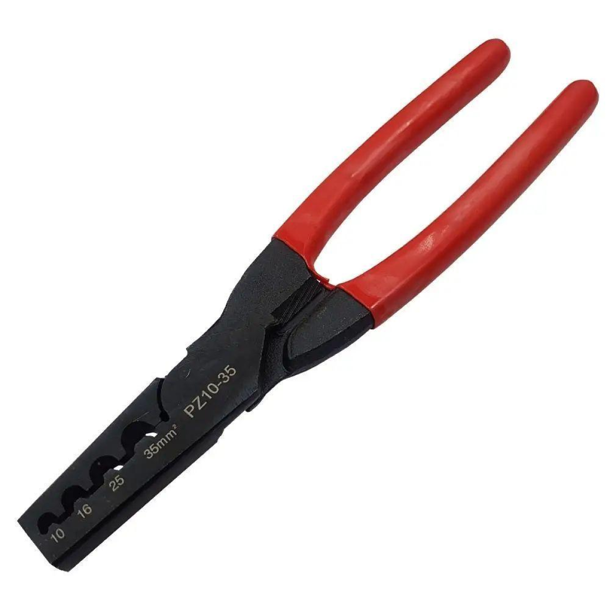 Кліщі обтискні ENERGIO PZ 10-35 для трубчастих наконечників 10-35 мм² Ручний обтискний інструмент ENERGIO PZ 10-35 призначений для надійного обтиску наконечників (гільз) на багатожильних проводах з перетином від 10 до 35 мм². Ідеально підходить для використання в електроустановчих роботах виробництві щитового обладнання та монтажі електропроводки. Цей інструмент забезпечує точне формування з“єднань, гарантує стійкий контакт і мінімальні втрати енергії. Технічні характеристики ручної обжимки PZ 10-35: Діапазон обтиску: 10 – 35 мм² Матеріал робочих губок: Високоміцна сталь Матеріал ручок: Протиковзкий двокомпонентний пластик Механізм приводу: Ручний Переваги кримпера ENERGIO PZ 10-35: Ергономічний дизайн – Прогумовані ручки забезпечують надійний хват і комфорт навіть при тривалій роботі. Висока точність – Конструкція забезпечує рівномірний і міцний обтиск, запобігаючи пошкодженню проводів. Довговічність – Виготовлений із міцних матеріалів, стійких до зносу та деформації. Універсальність – Підходить для різних типів з“єднань у діапазоні перетинів від 10 до 35 мм². Компактність і легкість – Зручний для транспортування та роботи в обмеженому просторі. Обираючи ENERGIO PZ 10-35 ви отримуєте професійний інструмент який забезпечує надійність і довговічність електричних з“єднань, підвищуючи безпеку та ефективність електромонтажу.