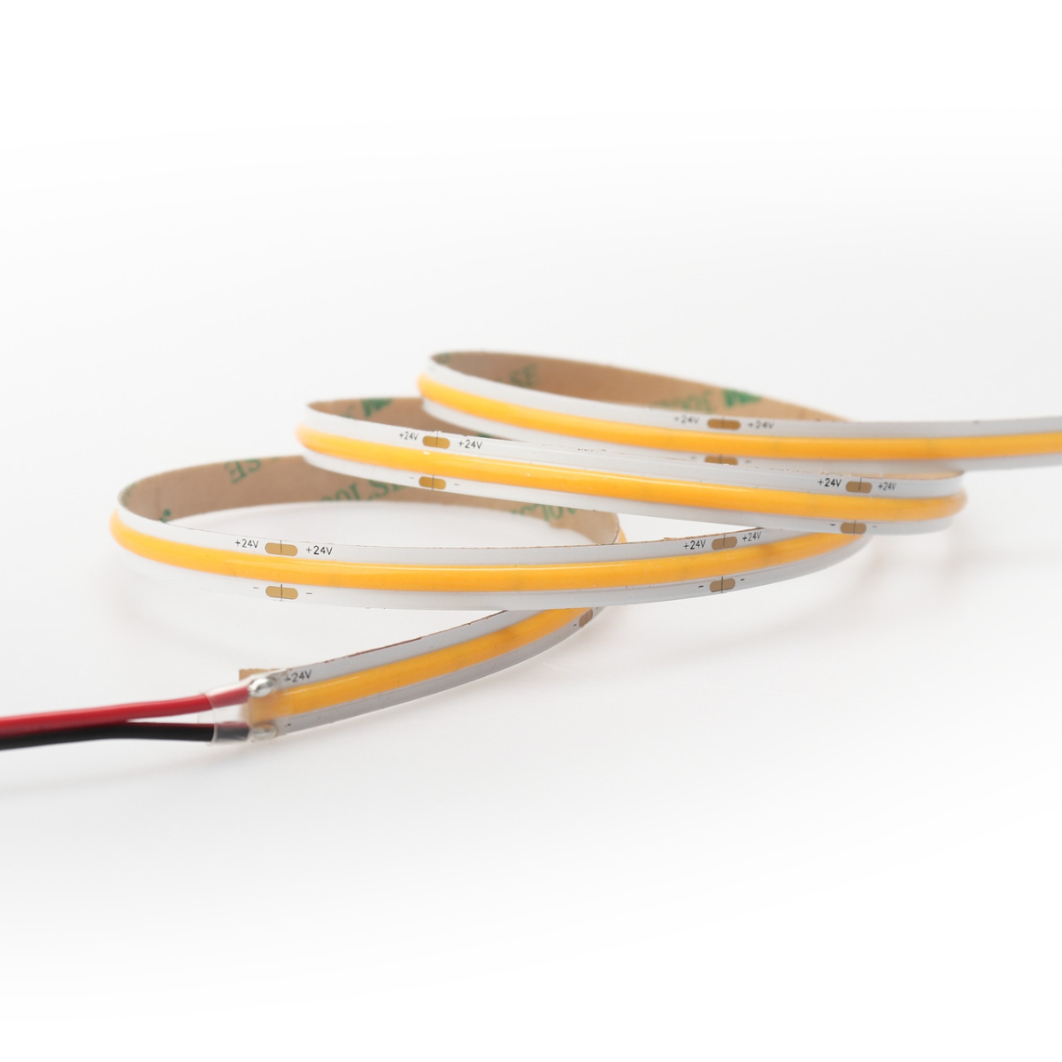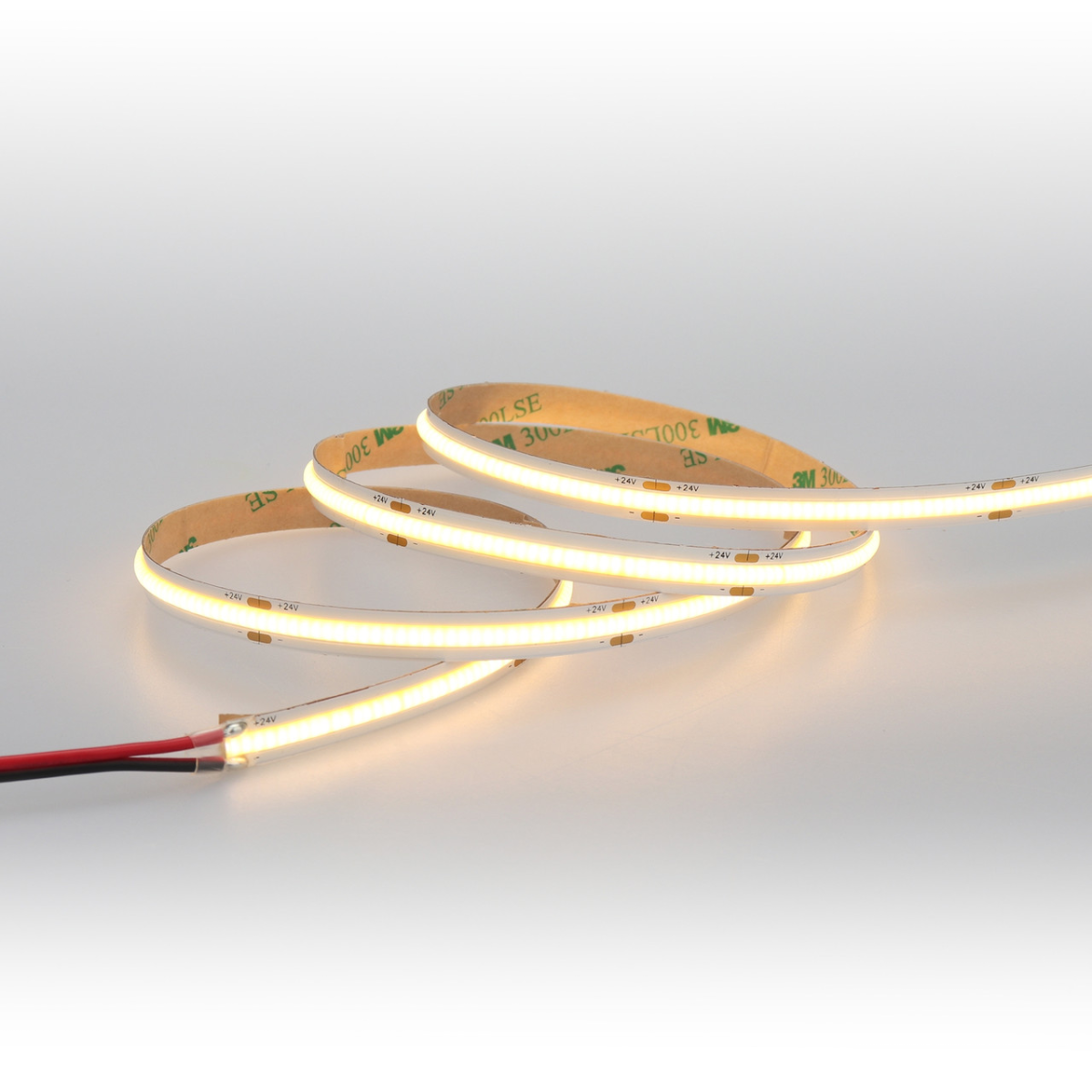 COB світлодіодна стрічка дає суцільне світло без видимих точок. Кристали COB у кількості 480шт/м. Дає якісне тепле біле світло (3000К) з індексом кольору CRI>90 і світловим потоком в 1200 люменів на метр. Кут свічення 180 °. Робоча напруга стрічки 24В, споживання 10Вт/м. Мінімальний відрізок 50мм, розмір стрічки 5000х8х2мм. Зворотний бік з клейовою основою для установки (скотч 3М). Продається пакетами по 5 метрів. Ціна вказана за 1м. Гарантійний термін – 5 років. Встановлення на профіль є обов“язковим.