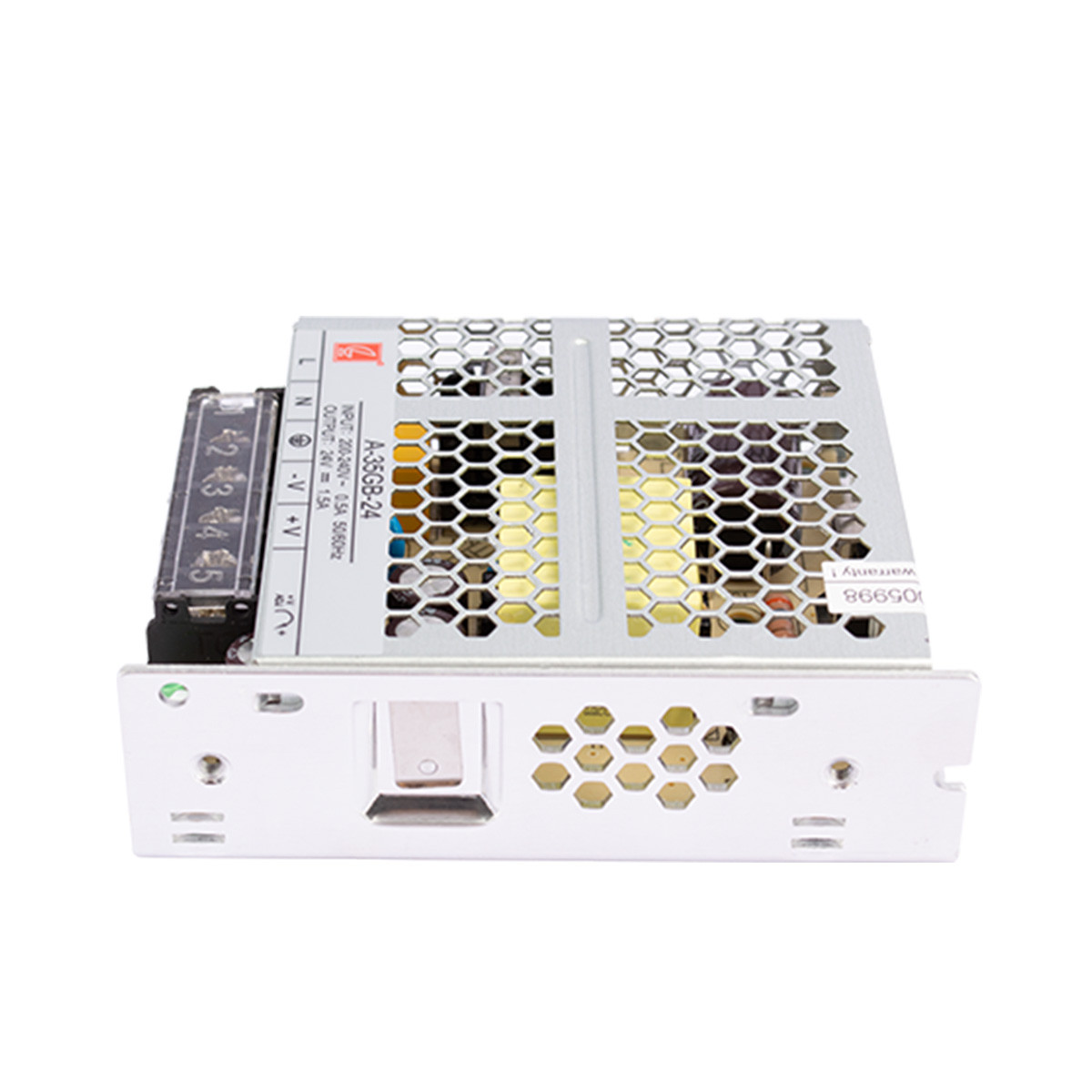 Джерело напруги з гальванічною розв“язкою для світлодіодних виробів. Вхідна напруга 176-264 VAC. Вихідні параметри: 24V, 1.5A, 35W. Вбудований PFC> 0.5. Негерметичний сітчастий алюмінієвий корпус IP 20. Габаритні розміри довжина 99 мм, ширина 82 мм, висота 30 мм. Гарантійний термін 3 роки.