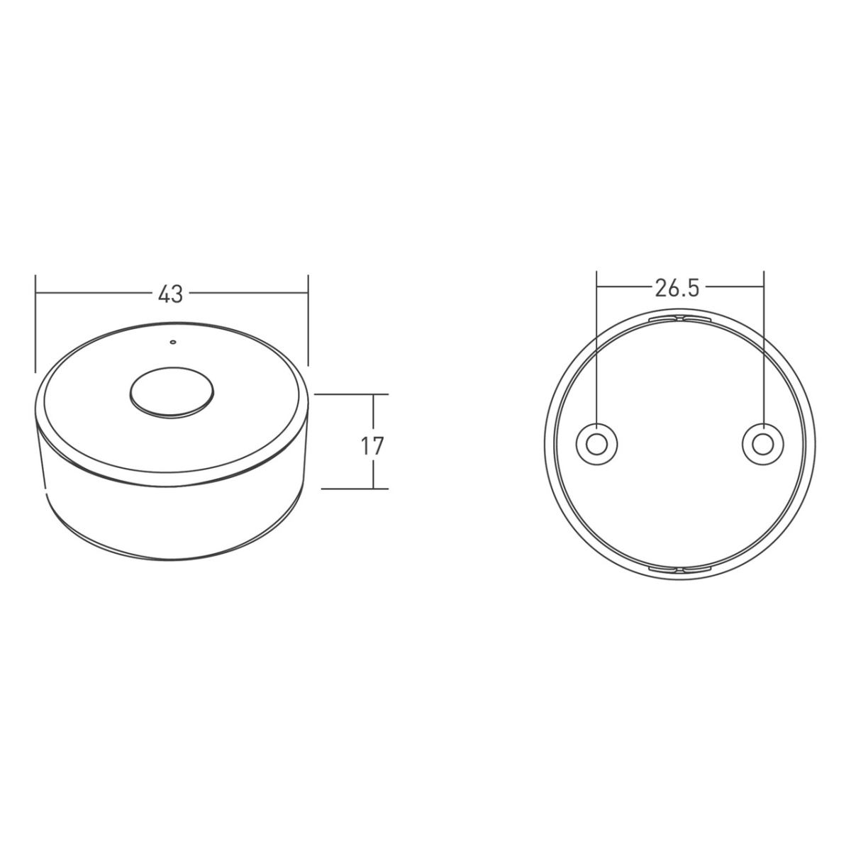 Радіочастотний пульт с кнопковим керуванням призначений для дистанційного керування одноколірними світлодіодними джерелами світла. Управління світлодіодною стрічкою та іншими джерелами світла здійснюється за допомогою універсальних контролерів серії USMART. Основні функції: увімкнення та вимкнення світла, регулювання яскравості. Можливість прив’язки необмеженої кількості контролерів до одного пульта. Сумісний з усім обладнанням серії USMART, що підтримує димування по радіоканалу. Світлодіодний індикатор роботи пристрою. Магніти на задній поверхні забезпечують просте встановлення на металевій поверхні. Універсальність використання: як пульт дистанційного керування, що носиться, так і встановлюється на магнітну поверхню або встановлюється на поверхню за допомогою шурупів.