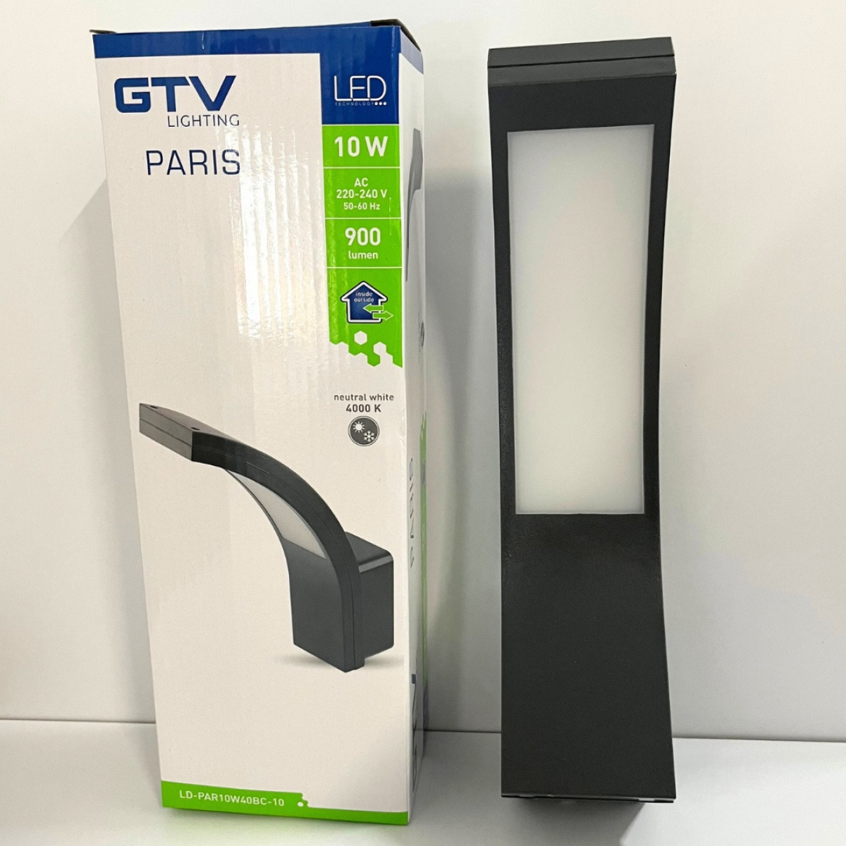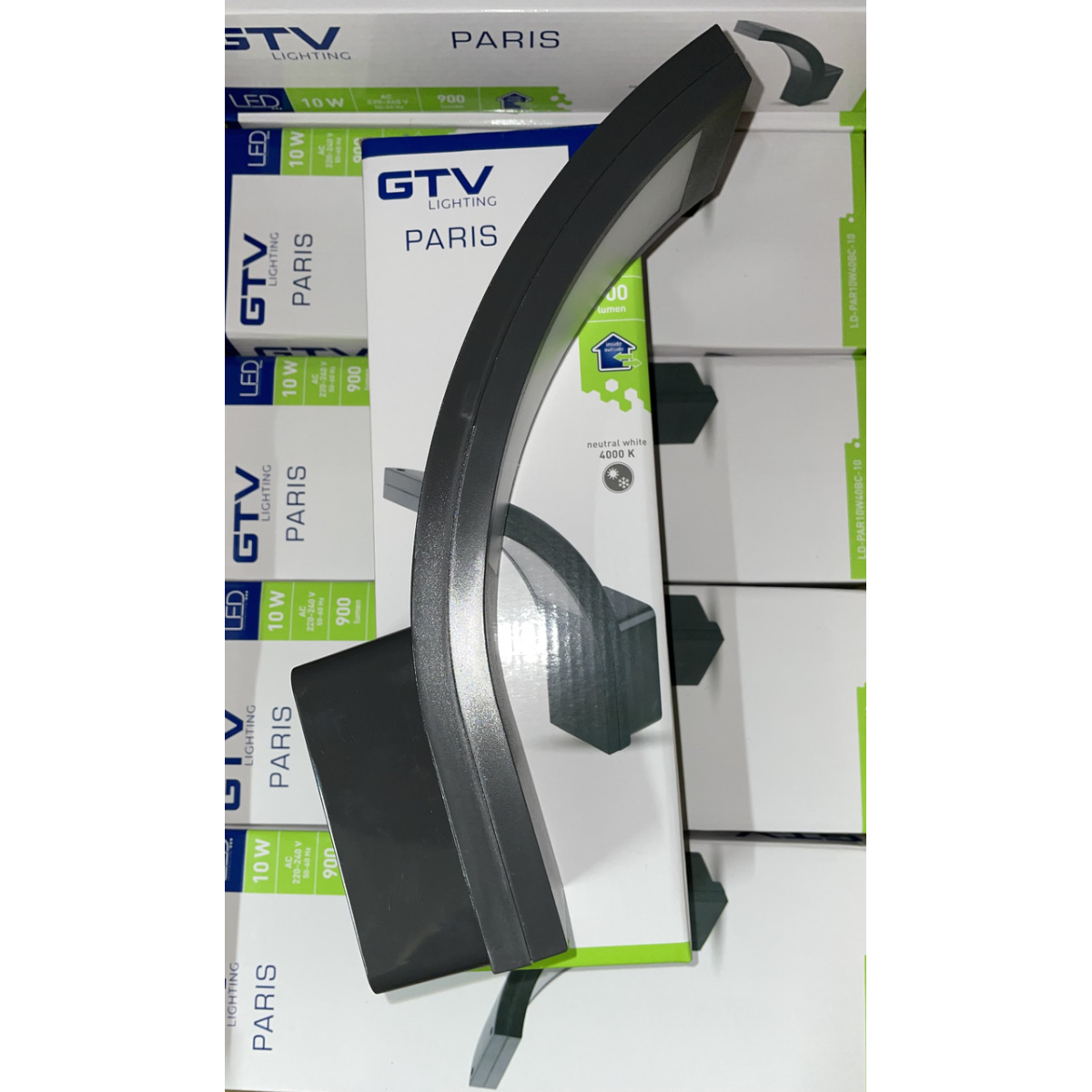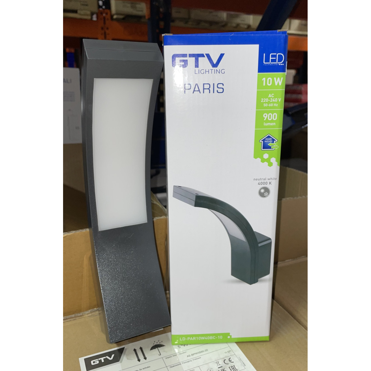 Світильник 10W Настінний Фасадний Світлодіодний Paris Led, Ip54, 140°, 4000K, Сірий (Ld-Par10W40Bc-10) GTV