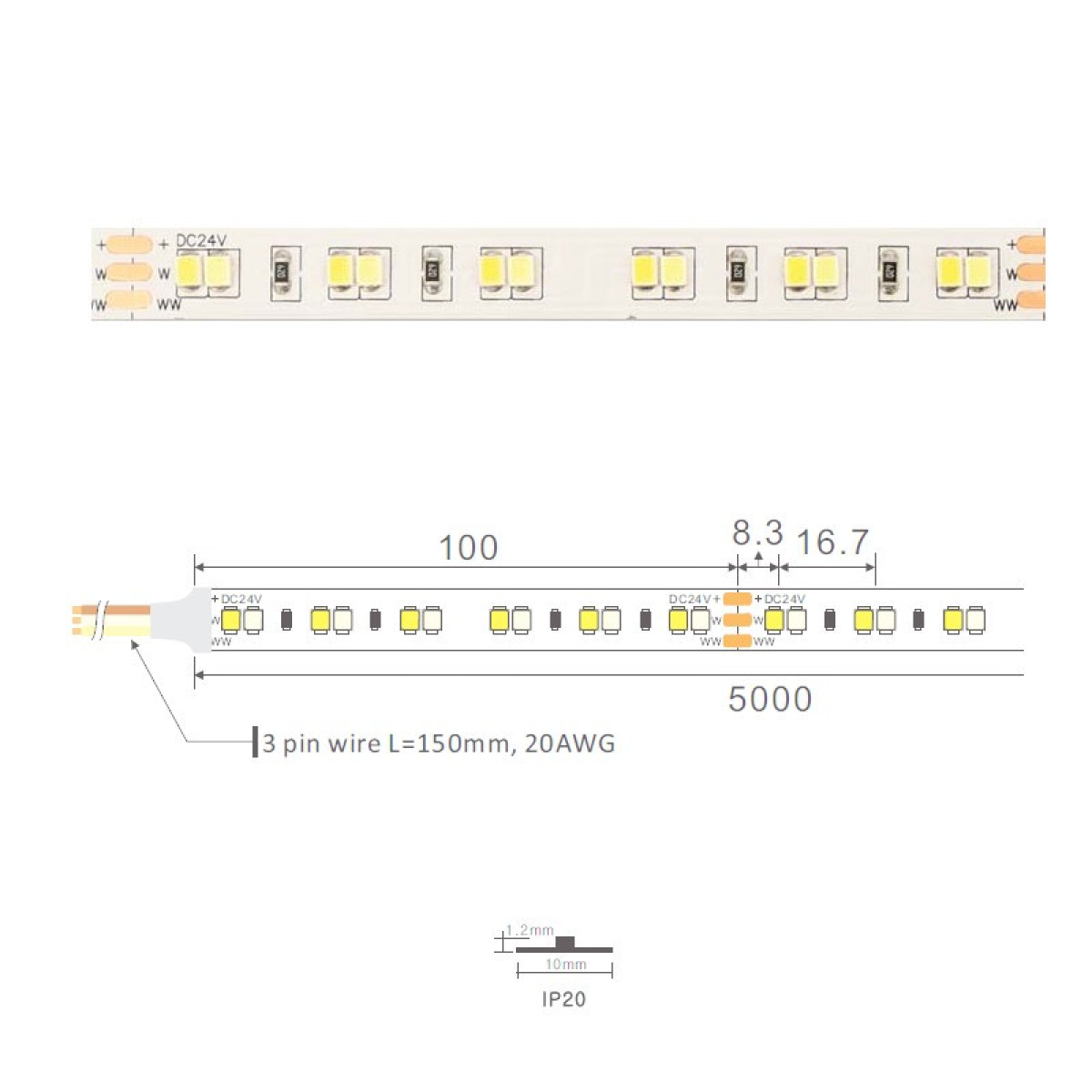 Мультибіла світлодіодна стрічка Ustrip LED120-2835-TW-24V-24W MIX