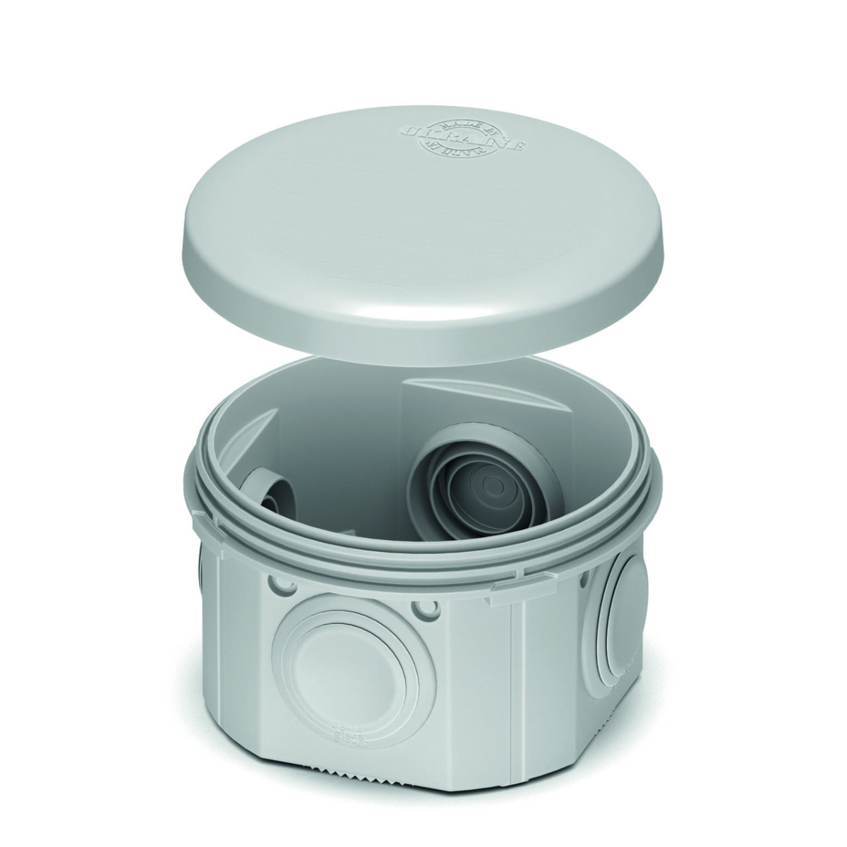 Розподільчий бокс відкритого монтажу, з підвищеним пило-волого захистом, застосовується для розведення електричного кабелю. Розподільний бокс складається з пластикової коробки, кришки, та кабельних вводів закритих ущільнювачами. Бокс відкритого монтажу пройшов випробування і має сертифікат :УкрСЕПРО Відповідає вимогам українського стандарту ДСТУ EN 60529:2014.