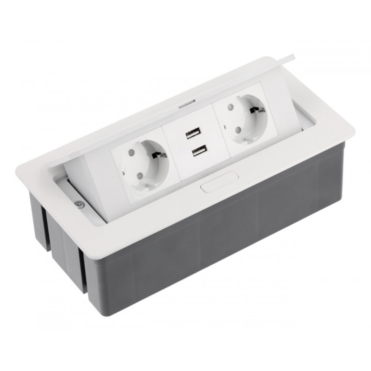 Подовжувач Вбудований Soft 2Xгн. Schuko, 2Xusb 2.1A 5V, Кабель 1.5 м, Білий (Ae-Pbsuc2Gs-10) GTV
