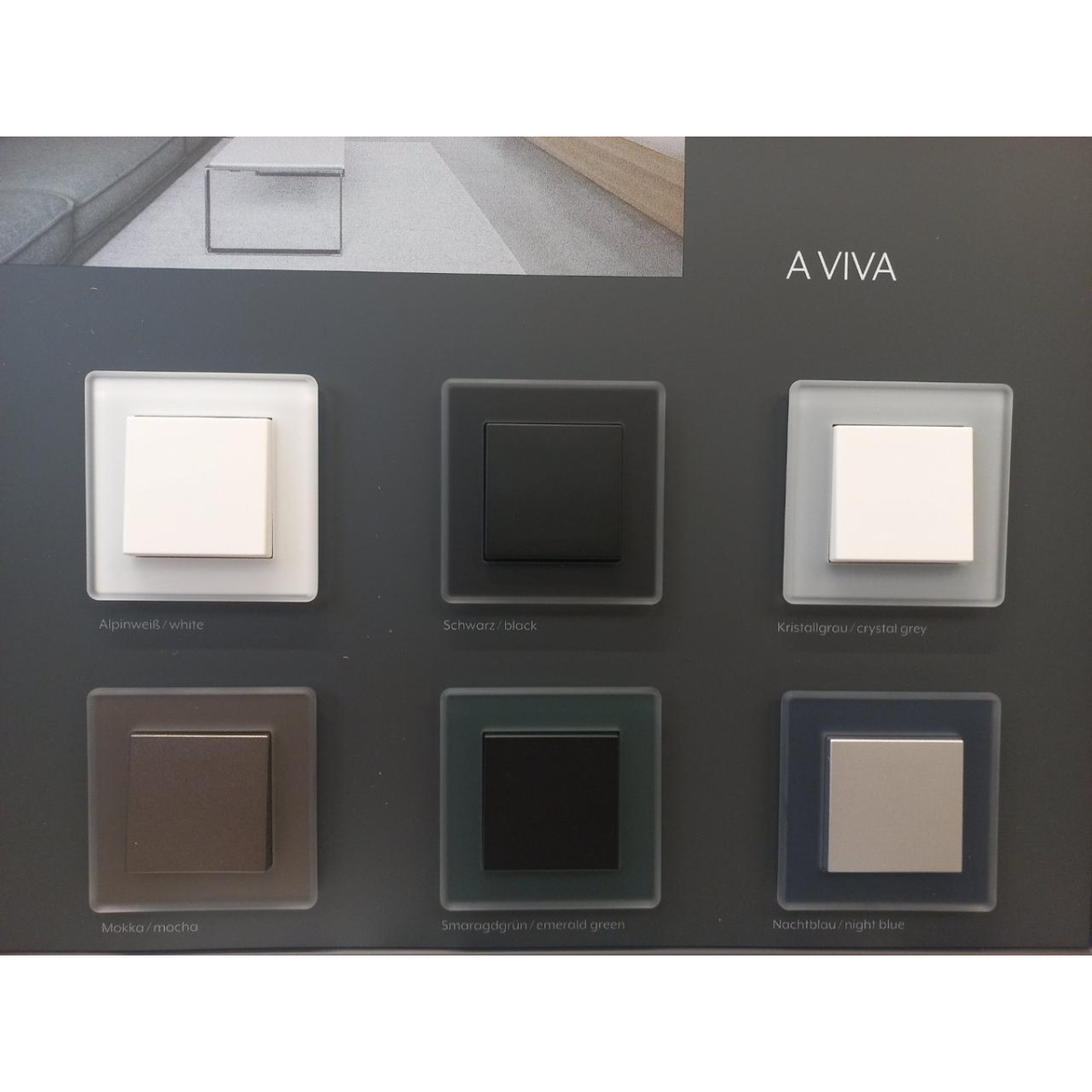 Вимикачі та розетки JUNG A VIVA JUNG A VIVA розширює асортимент серії A за допомогою рамок із сатинованого скла. Поєднання закруглених країв і сатинованої поверхні надає склу м“якості, пом“якшуючи жорсткість скла як матеріалу. Дизайн серії JUNG A VIVA втілює в собі останні зміни та тенденції сучасного світу. М“які форми конструкції дають змогу використовувати серію практично в будь-якому інтер“єрі. Характерні, злегка закруглені краї рамок і матові поверхні найкраще підходять для підкреслення елегантності A VIVA. Це дає змогу створити електроінсталяцію, що гармонійно вписується в інтер“єр. A VIVA можна встановлювати групами від 1 до 5 рамки як горизонтально, так і вертикально. Рамки A VIVA доступні в таких кольорах: смарагдово-зелений, нічний синій, кришталево-сірий, білий, чорний, шампань і моко. ФУНКЦІОНАЛ: У серії JUNG A VIVA продумана не тільки форма, але й практичне застосування. A VIVA може використовуватися у всьому світі завдяки розеткам міжнародних стандартів. Серія чудово поєднується з усіма механізмами серії А от JUNG, включно з KNX, дає можливість створювати цікаві колірні рішення. A VIVA ідеально підходить для будь-якого сучасного електрообладнання: керування світлом, регулювання температури, керування жалюзі або музикою для розумних домашніх рішень, електричні та інформаційні розетки, датчики руху та багато іншого. АСОРТИМЕНТ: білий чорний світло сірий смарагдово зелений AV581GLMWW AV581GLMSW AV581GLMKG AV581GLMSG AV582GLMWW AV582GLMSW AV582GLMKG AV582GLMSG AV583GLMWW AV583GLMSW AV583GLMKG AV583GLMSG AV584GLMWW AV584GLMSW AV584GLMKG AV584GLMSG AV585GLMWW AV585GLMSW AV585GLMKG AV585GLMSG нічний синій мокко шампань AV581GLMNB AV581GLMCH AV581GLMMO AV582GLMNB AV582GLMCH AV582GLMMO AV583GLMNB AV583GLMCH AV583GLMMO AV584GLMNB AV584GLMCH AV584GLMMO AV585GLMNB AV585GLMCH AV585GLMMO