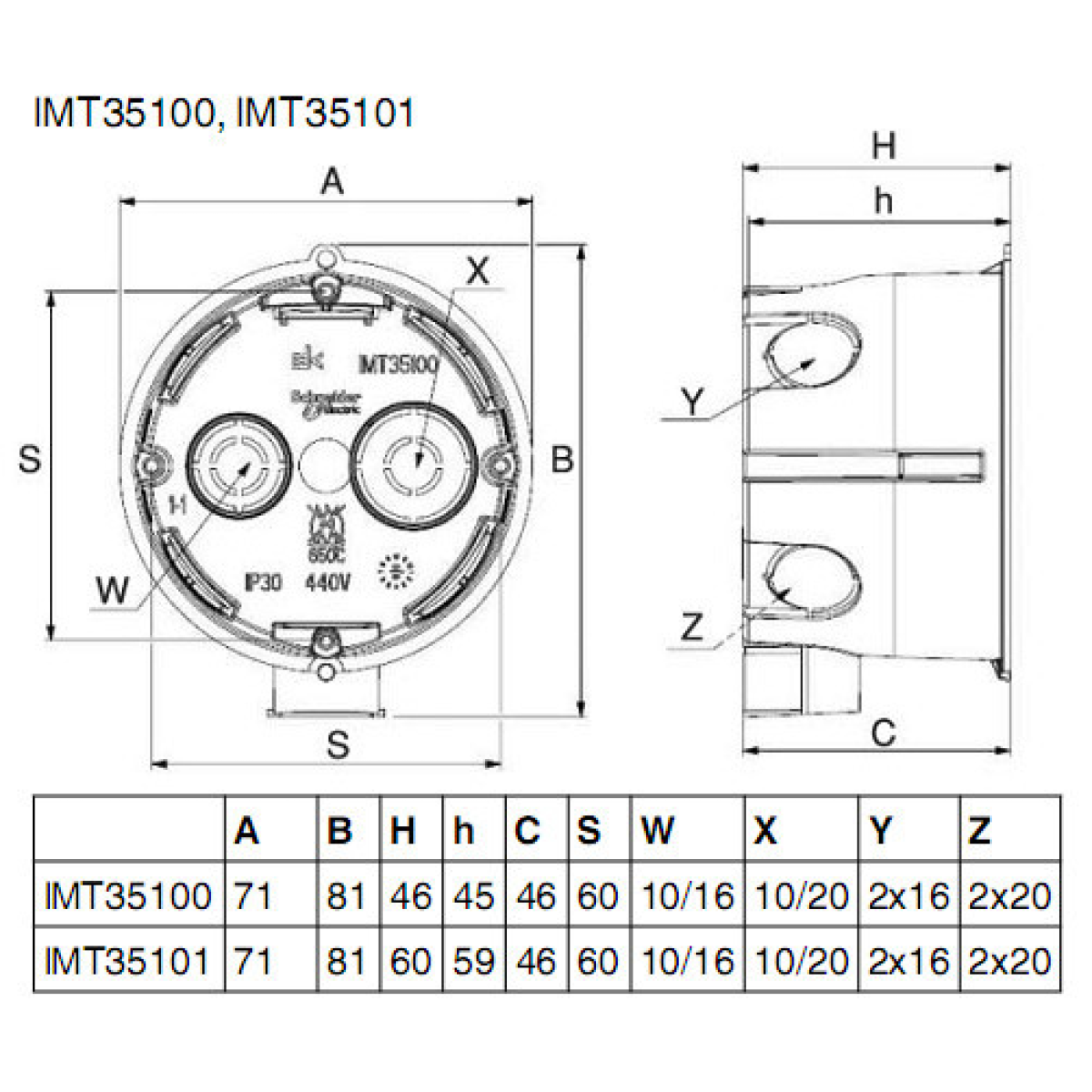 Коробка установочна для суцільних стін 65x45 IMT35100