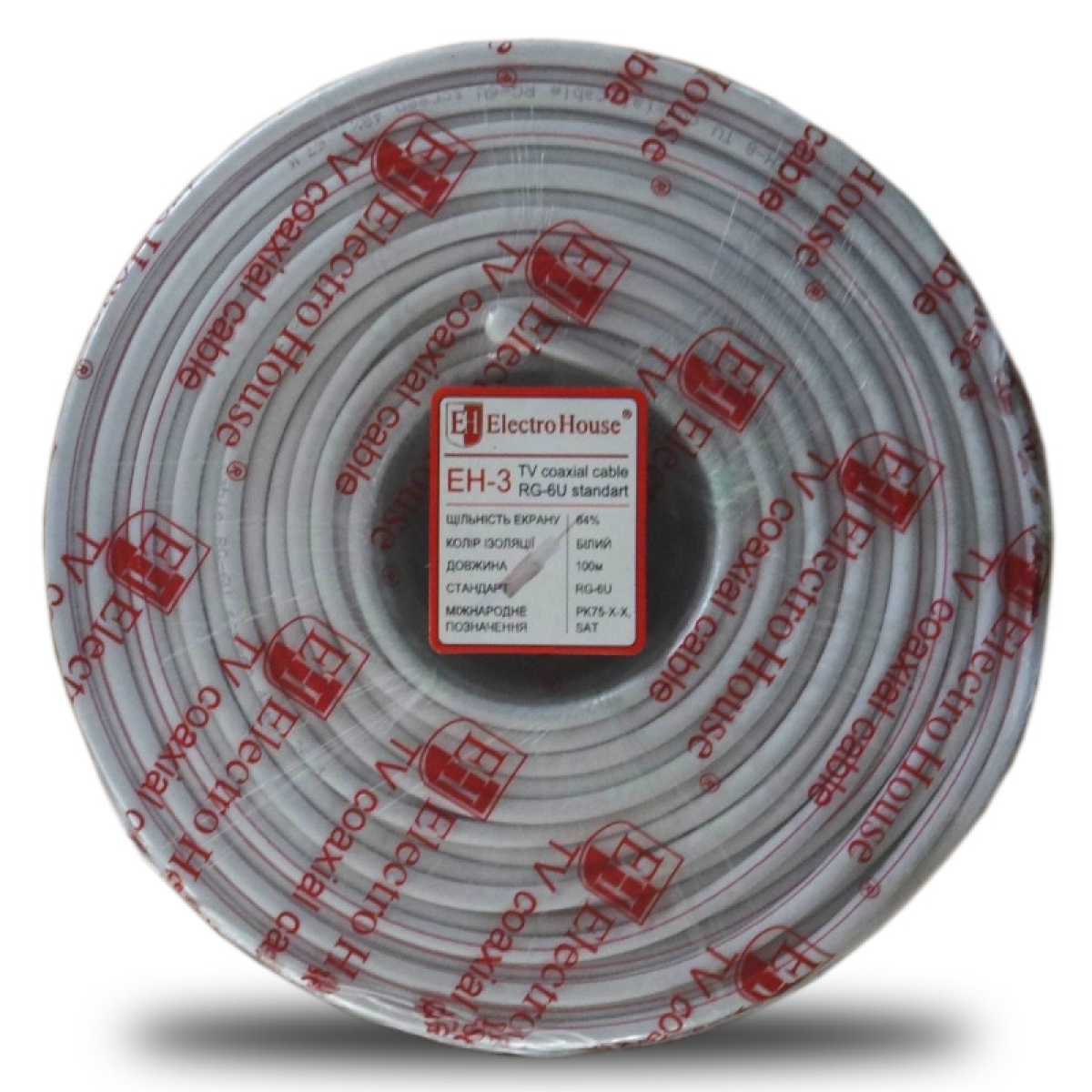 • Кабель коаксіальний RG-6U 64% обміднена сталь 1.02 ПВХ, білий, 100 м