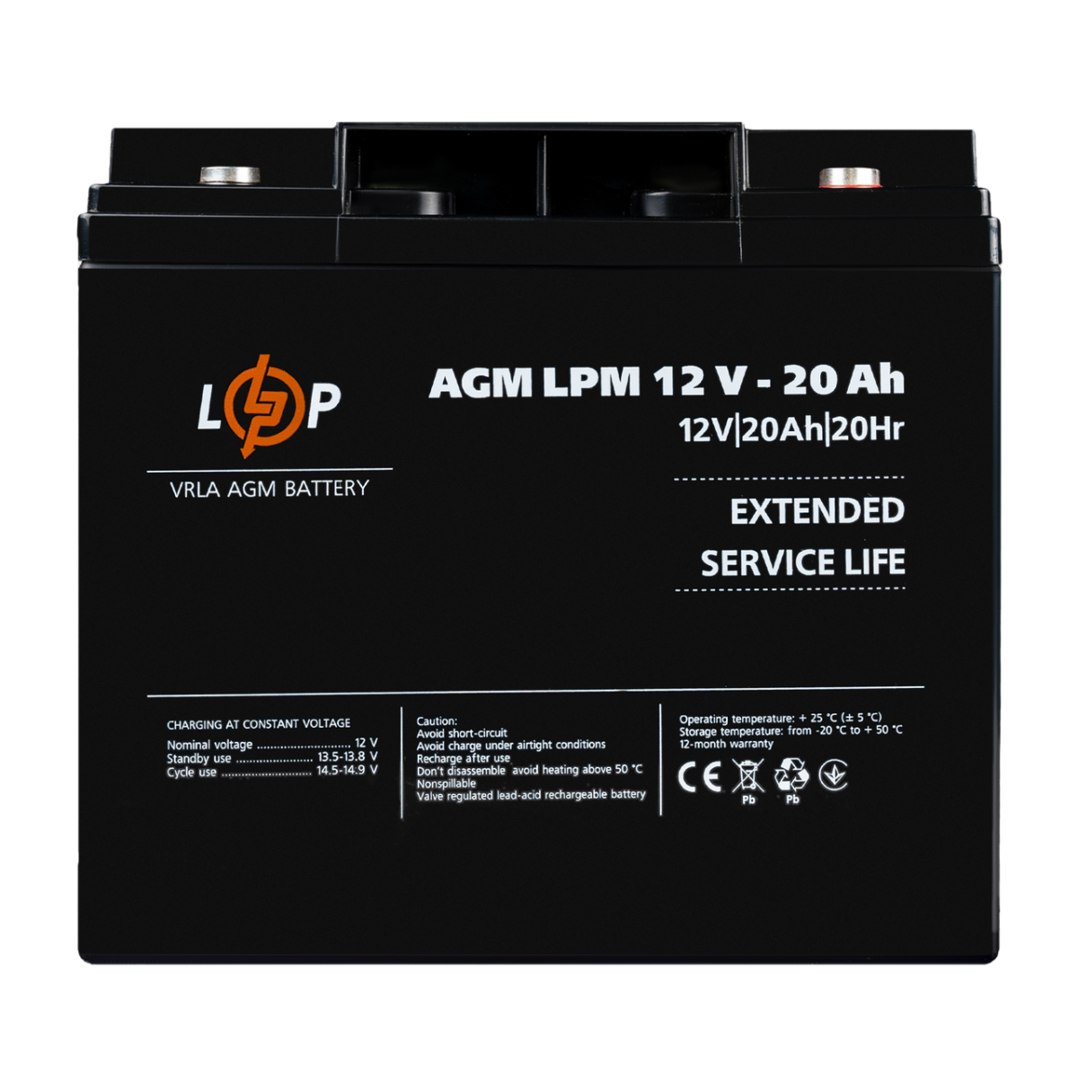 Акумулятор свинцево-кислотний AGM Зовнішня універсальна АКБ, виготовлена за технологією AGM – повністю герметичне зовнішнє джерело живлення, яке не потребує технічного обслуговування в процесі зберігання та експлуатації. Технологія виготовлення універсальних зовнішніх акумуляторів AGM (absorbent glass mat) передбачає наявність усередині батареї абсорбуючої прокладки зі скловолокна. АКБ цього типу чудово справляються з підвищеними навантаженнями. Переваги AGM акумулятора: Ресурс циклів заряд/розряд у AGM акумулятора – 400* (загалом 5 років, залежно від умов експлуатації). Акумулятор можна встановлювати у житлових приміщеннях. Відсутність вільного рідкого електроліту між пластинами та повна герметичність корпусу виключають витікання кислоти та гарантують відсутність шкідливих випарів. Ці акумулятори при практичному використанні показують стабільні результати під час роботи в умовах низьких (-20°С) та високих (+50°С) температур навколишнього середовища. В експлуатації свинцево-кислотний акумулятор AGM здатний витримувати тривалий розряд, циклічний розряд, глибокий розряд і розряд високими струмами. Акумулятори цього типу мають низькі показники саморозряду при тривалому зберіганні та надійний самозахист від перерозряду та надмірного заряду батареї. Особливості виробництва AGM акумуляторів Всередині акумуляторної батареї, виготовленої за технологією AGM, розміщують пористі ізолюючі прокладки тонкого скловолокна. Сепаратори та електродні пластини щільно притиснуті один до одного. Таким чином, між пластинами акумулятора залишається вільного рідкого електроліту, бо він міститься в сепараторі та в активній частині електродів. Кількість рідкого електроліту дозується таким чином, щоб дрібні пори заповнювалися кислотою, а великі забезпечували циркуляцію газів. Конструкція АКБ має покращену систему рекомбінації газів - кисень і водень, що утворюються в результаті хімічних процесів, не встигають випаровуватись за межі герметичного корпусу до моменту конденсації. Області застосування: навіщо потрібен свинцево-кислотний акумулятор AGM? Універсальний зовнішній зарядний акумулятор використовують: У телекомунікаційних та інших системах зв“язку, у тому числі як зовнішній АКБ для заряджання мобільних телефонів, рації тощо. Для обладнання систем відеоспостереження, безпеки, охоронної, протипожежної та іншої сигналізації. У системах безперебійного живлення серверних станцій. Як джерело живлення для медичного, лабораторного, торговельного та іншого спеціалізованого обладнання. У системах накопичення енергії від альтернативних джерел (АКБ для сонячних батарей). Як акумулятор для аварійного або світлодіодного світильника. Як акумулятори для блоків безперебійного живлення та UPS. Які АКБ підійдуть для систем аварійного освітлення в Україні, а який АКБ купити до безперебійника? Вибір акумулятора залежить від потужності споживачів, які мають бути підключені, а також від необхідного вам часу автономної роботи електрообладнання від АКБ. Зовнішній акумулятор AGM для ДБЖ повинен мати достатній запас ємності, широкий діапазон робочих температур та тривалий термін експлуатації. Перед тим, як прийняти рішення, який акумулятор краще купити для ДБЖ, уважно вивчіть параметри джерела безперебійного живлення та визначте кількість часу, необхід