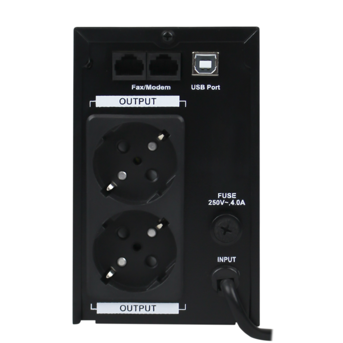 Джерело безперебійного живлення LPM-U625VA - це лінійно-інтерактивний пристрій з апроксимованою синусоїдою. Застосовується для стабілізації напруги в мережі живлення електричним струмом побутової, офісної або промислової техніки. Пристрій здатний забезпечувати автономну роботу приладів (під час відключення електроенергії) від акумуляторної батареї протягом 10-15 хвилин. Час перемикання в автономний режим - 4-6 мс. ДБЖ LPM-U625VA рекомендується під“єднувати до телевізійного або звукового устаткування (у тому числі пристрої охоронного відеоспостереження), кухонної або побутової техніки, а так само до освітлювальних приладів. Споживана потужність - 625VA/437W. Пристрій працює в умовах вхідної напруги в мережі 145-290V. Величина вихідної напруги - 220V±10%. Частотний діапазон - 50/60 Hz. Тип підключення до мережі - євровилка. Для підключення електричних приладів зовнішня сторона корпусу ДБЖ LPM-U625VA обладнана двома євророзетками. Інтерфейс підключення до персонального комп“ютера - USB. Матеріал виготовлення корпусу - металевий сплав. Колір корпусу - чорний. Із зовнішнього боку корпусу, крім вилки та розеток, розташована світлова LCD індикація, яка показує в якому режимі працює LPM-U625VA (від мережі або від акумулятора). Габаритні розміри - 308х85х139 мм. Вага - 4.5 кг.