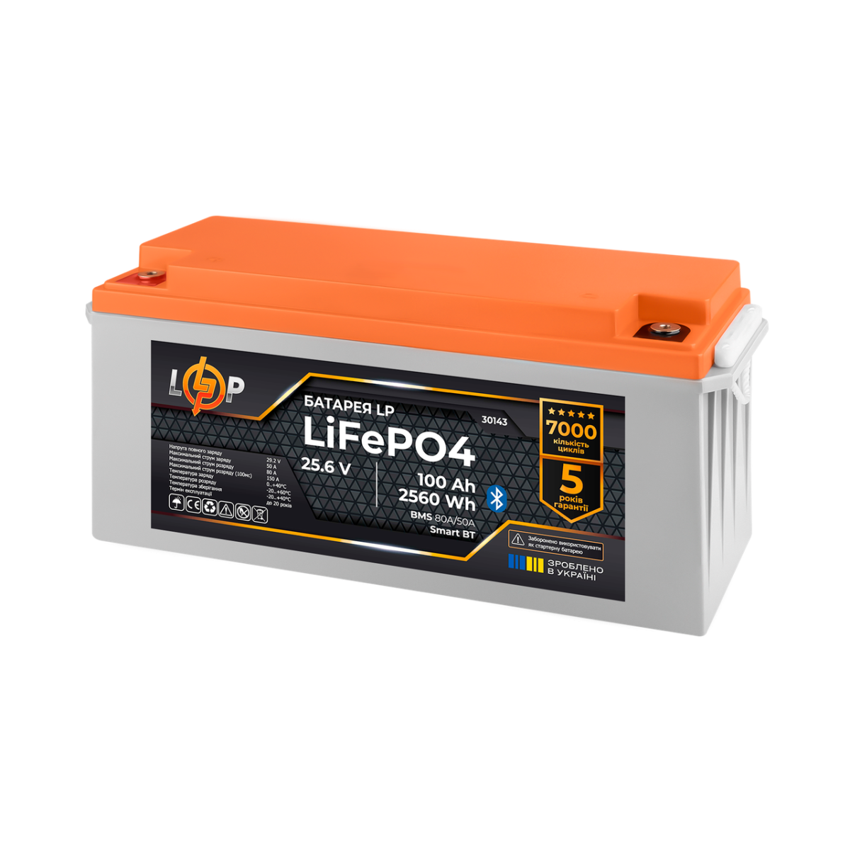 Акумулятор LP LiFePO4 25,6V - 100 Ah (2560Wh) (BMS 80А/50) пластик Smart BT